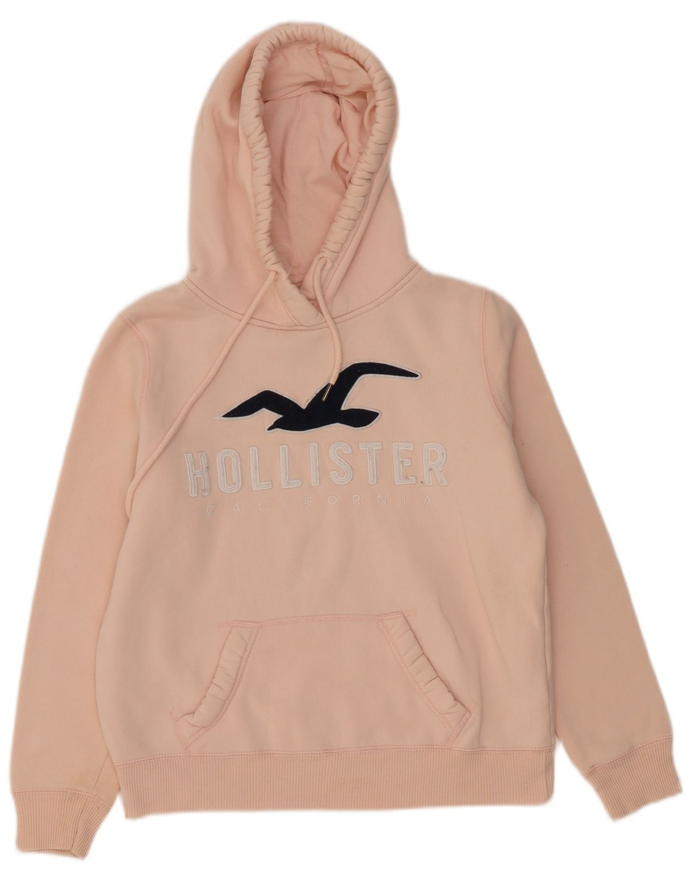 HOLLISTER Womens Oversized Graphic Hoodie Jumper UK 6 XS Pink Cotton