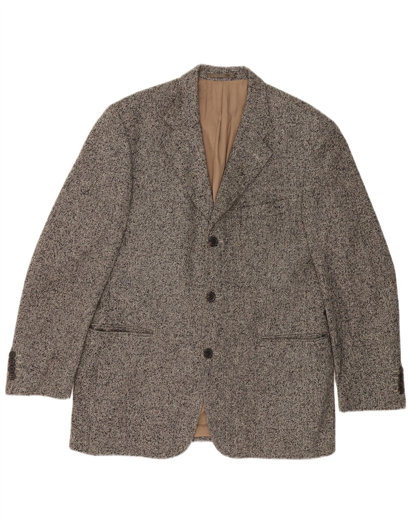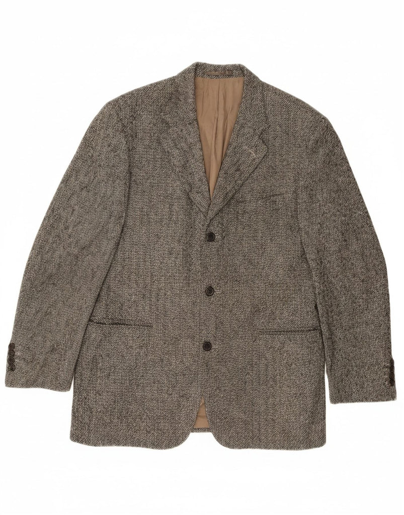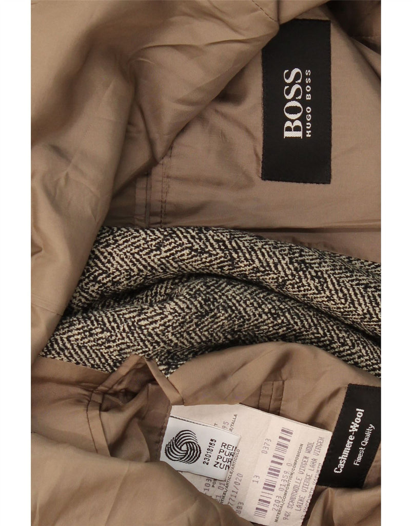 HUGO BOSS Mens 3 Button Blazer Jacket UK 38 Medium Grey Herringbone Wool