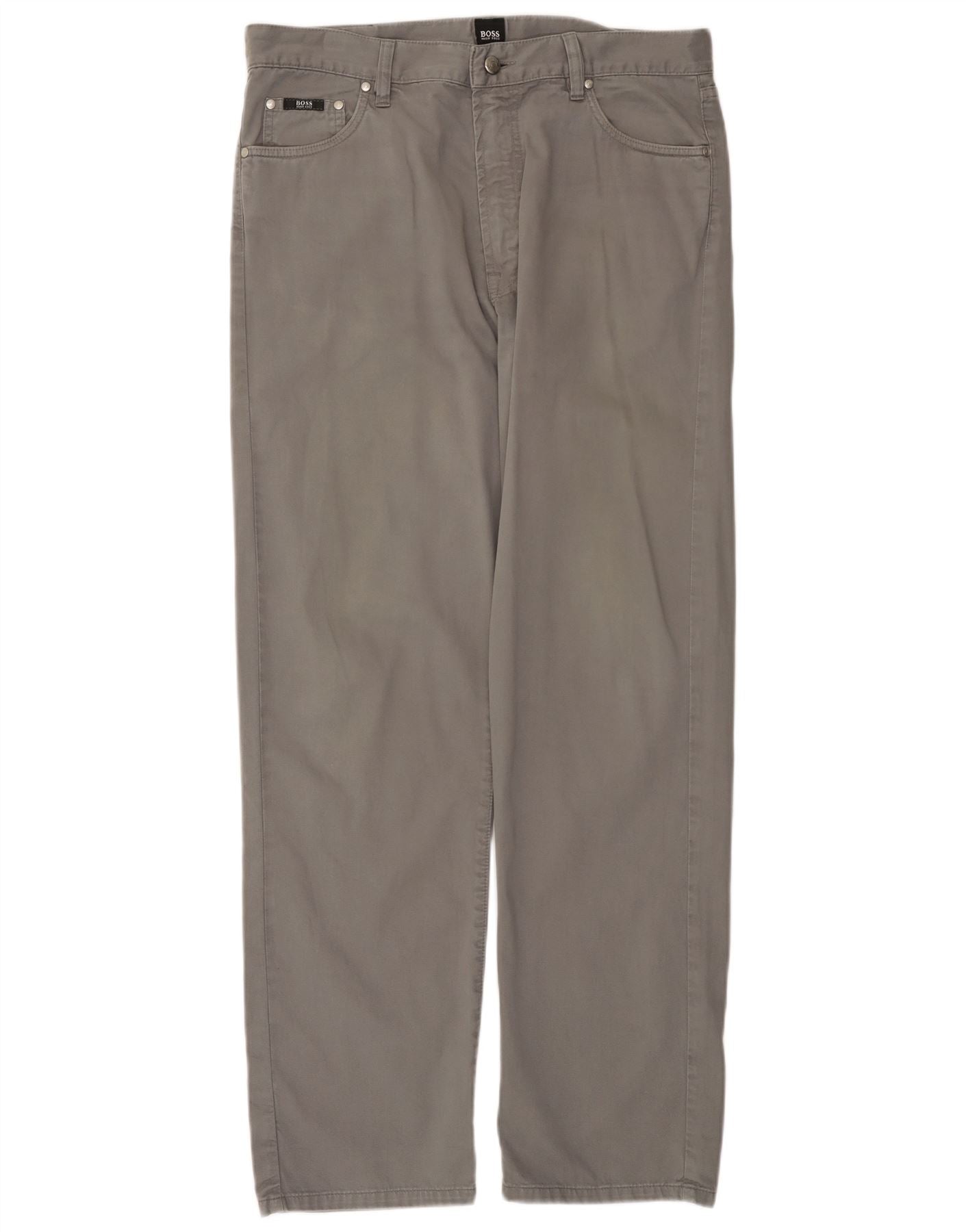 HUGO BOSS Mens Arkansas Straight Casual Trousers W36 L32 Grey Cotton