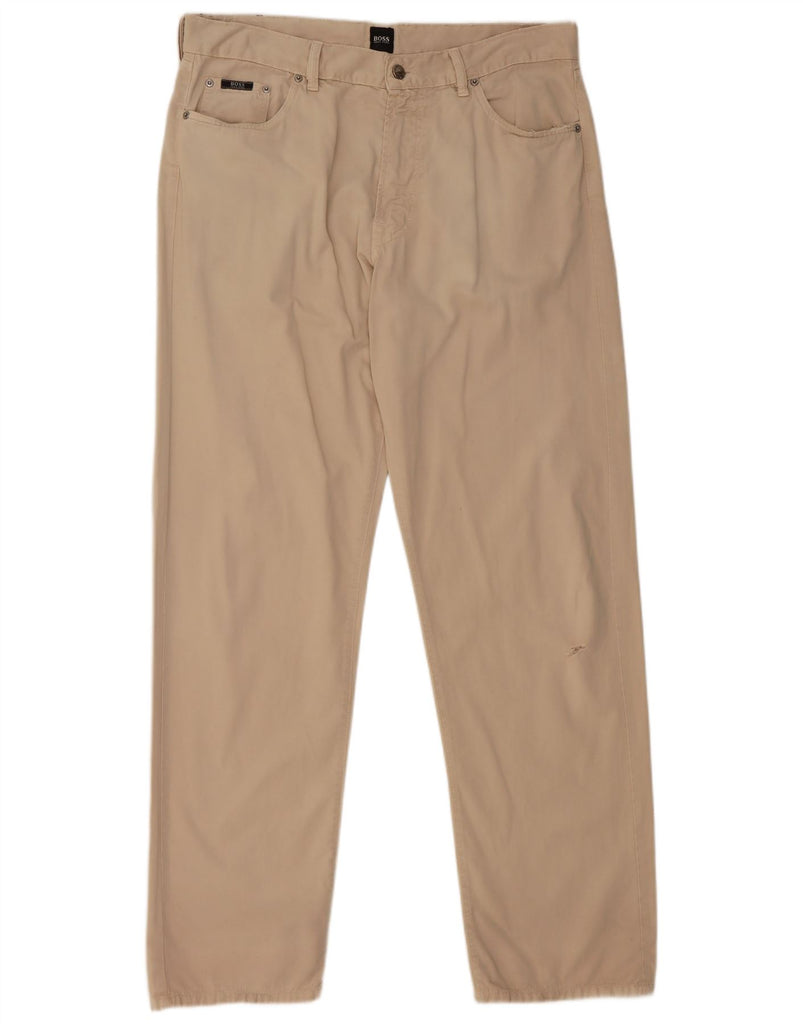 HUGO BOSS Mens Arkansas Straight Casual Trousers W38 L34 Beige Cotton