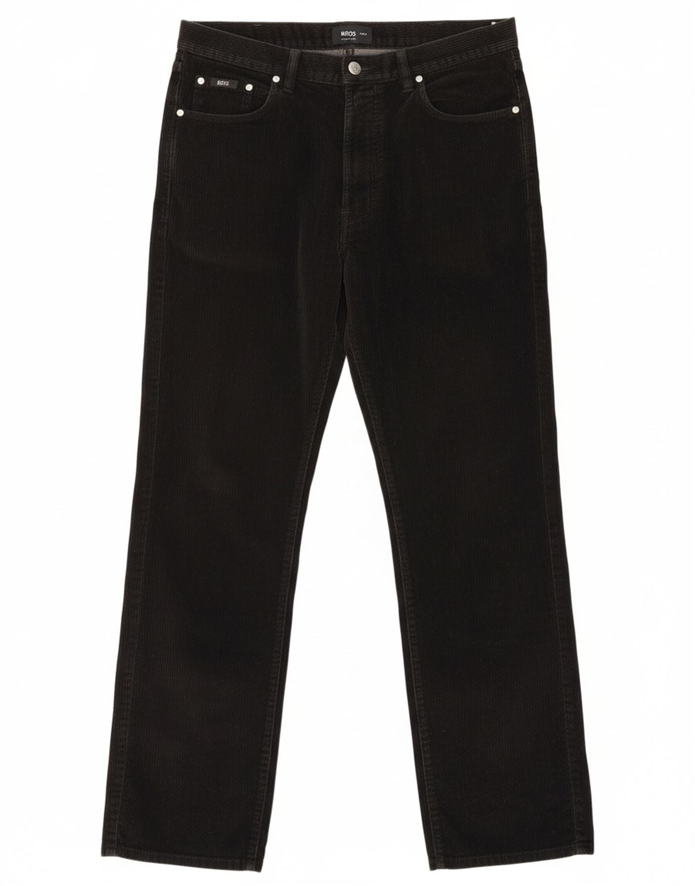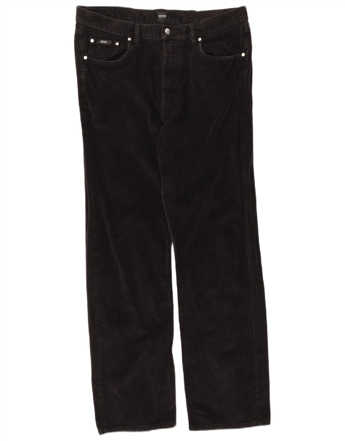 HUGO BOSS Mens Arkansas Straight Corduroy Trousers W36 L32 Black Cotton