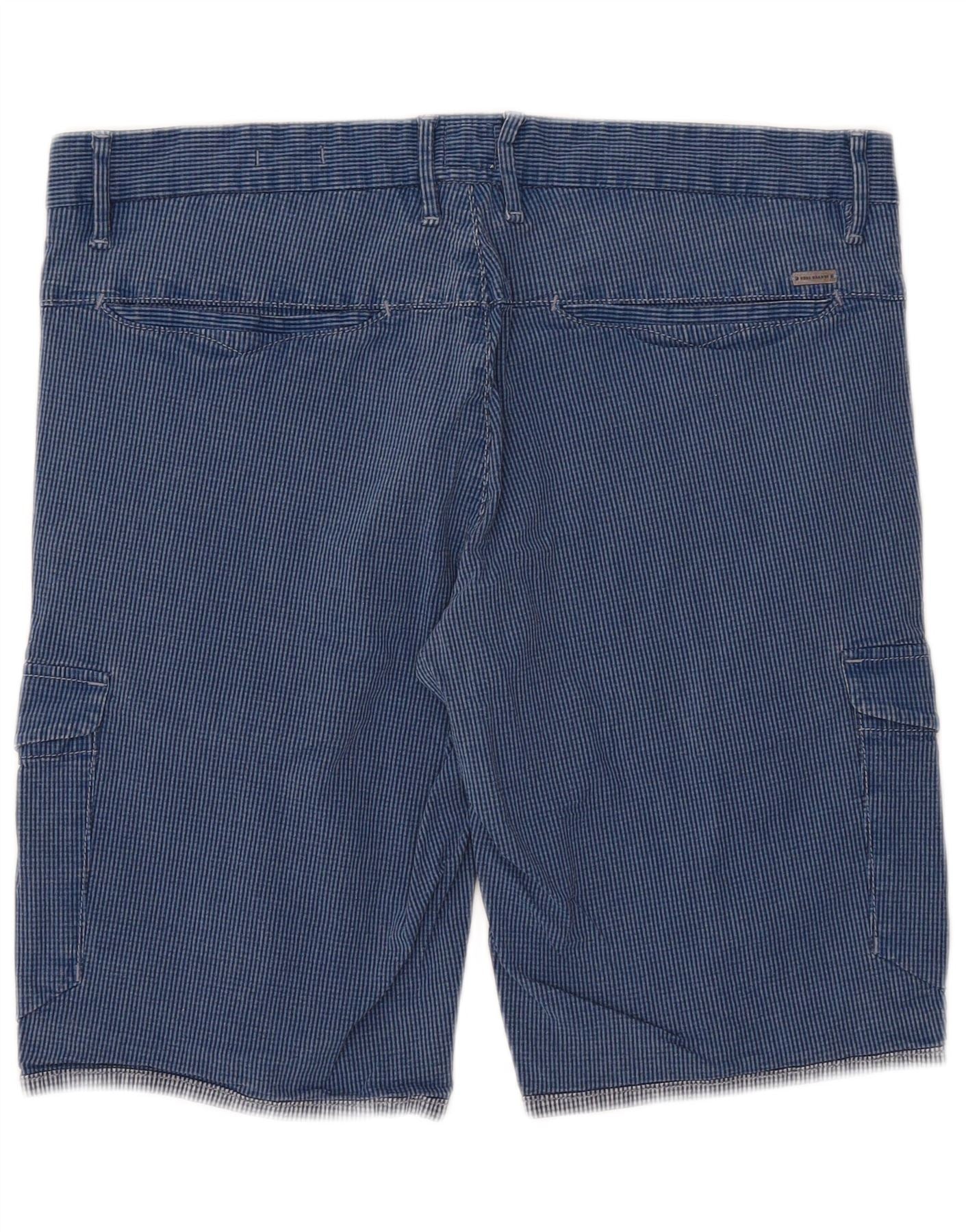 Hugo Boss Mens Cargo Shorts EU 48 Medium W34 Blue Gingham Cotton