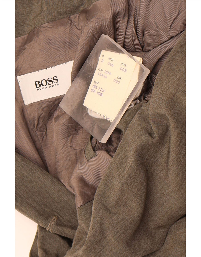 HUGO BOSS Mens Double Breasted Blazer Jacket IT 50 Large Grey Silk
