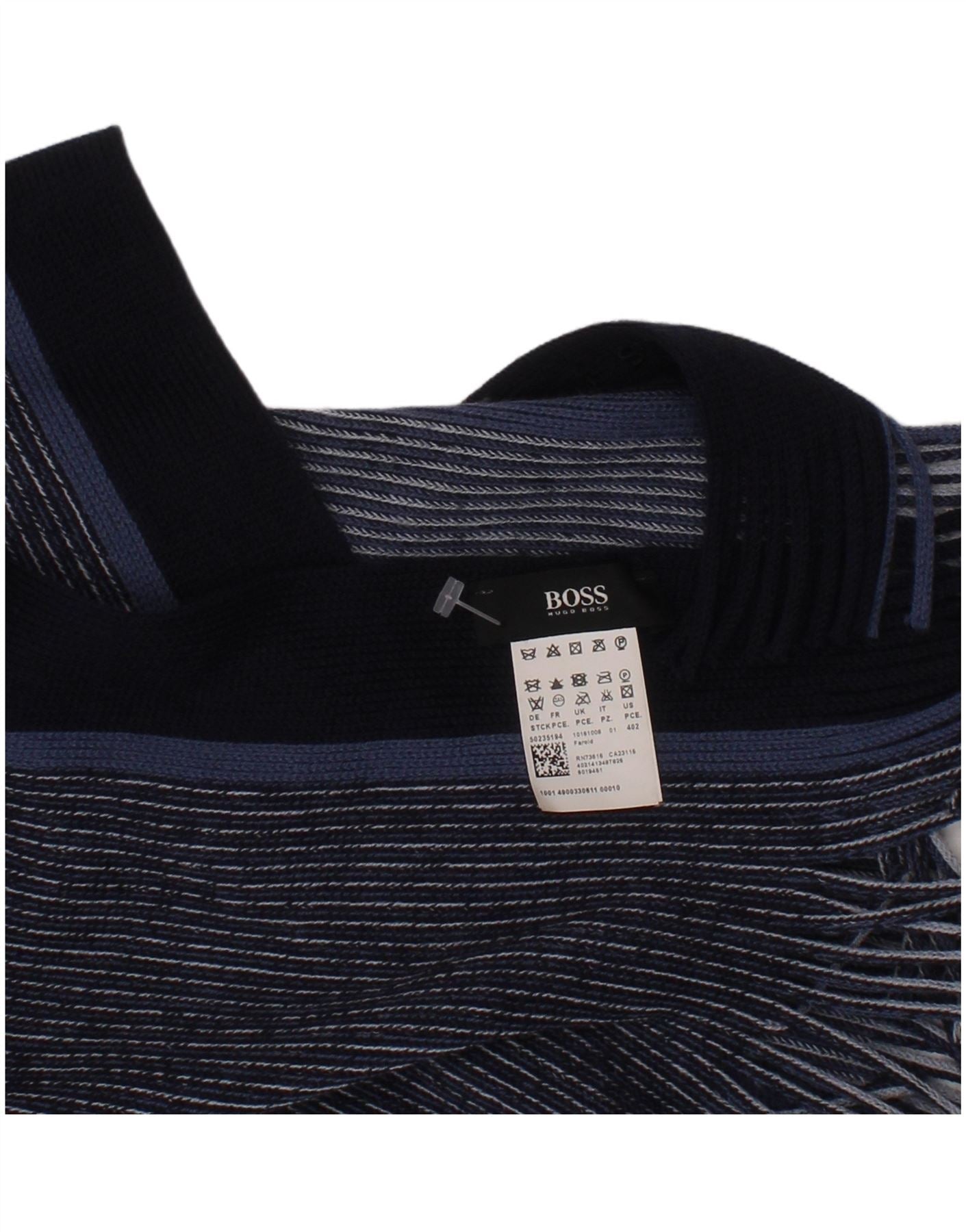 HUGO BOSS Mens Geometrical Rectangle Scarf One Size Navy Blue Classic