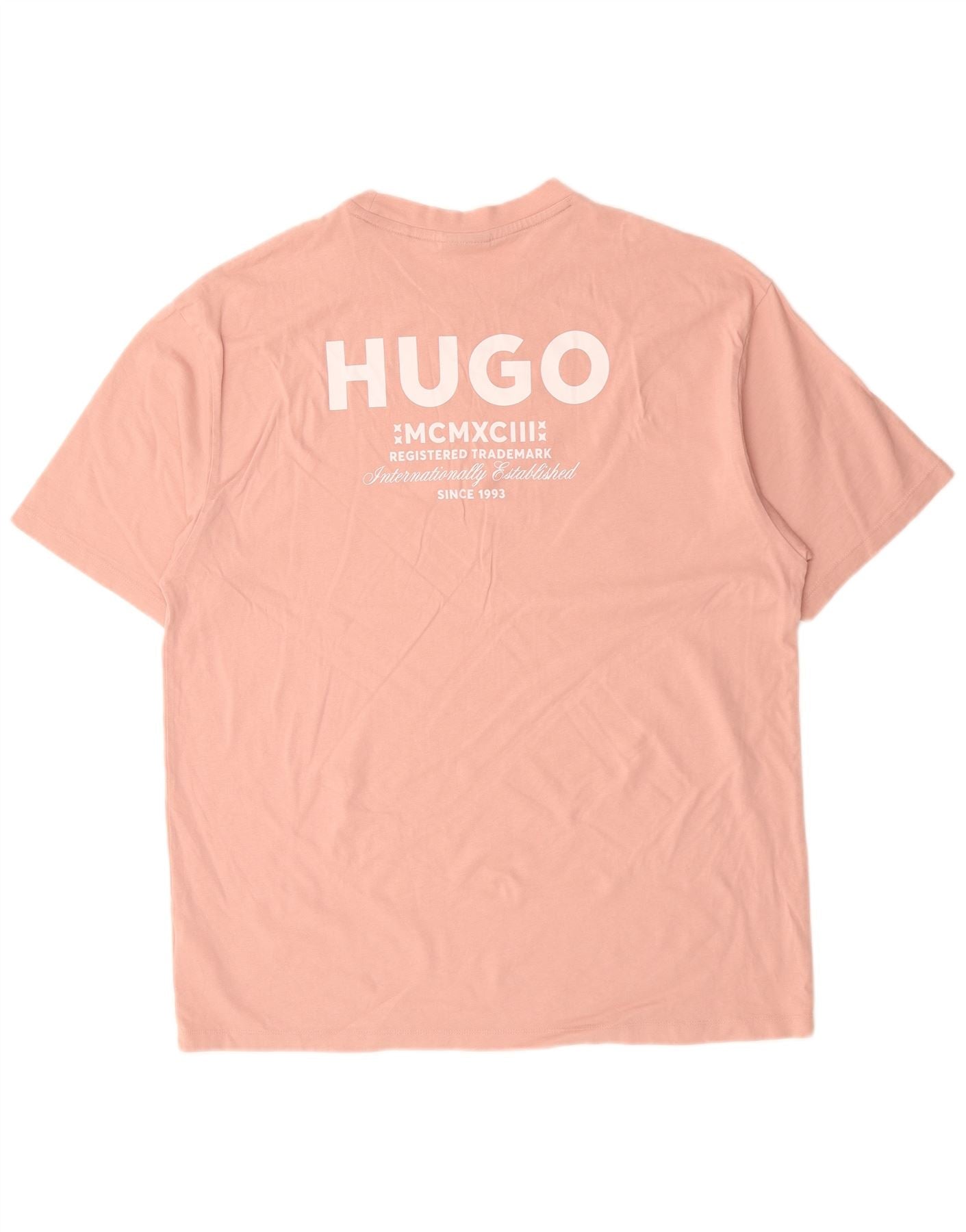 HUGO BOSS Mens Graphic T-Shirt Top XL Pink Cotton