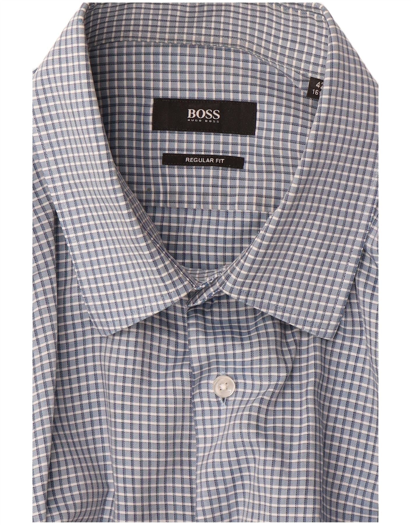 HUGO BOSS Mens Regular Fit Shirt Size 42 16 1/2 Large Blue Gingham