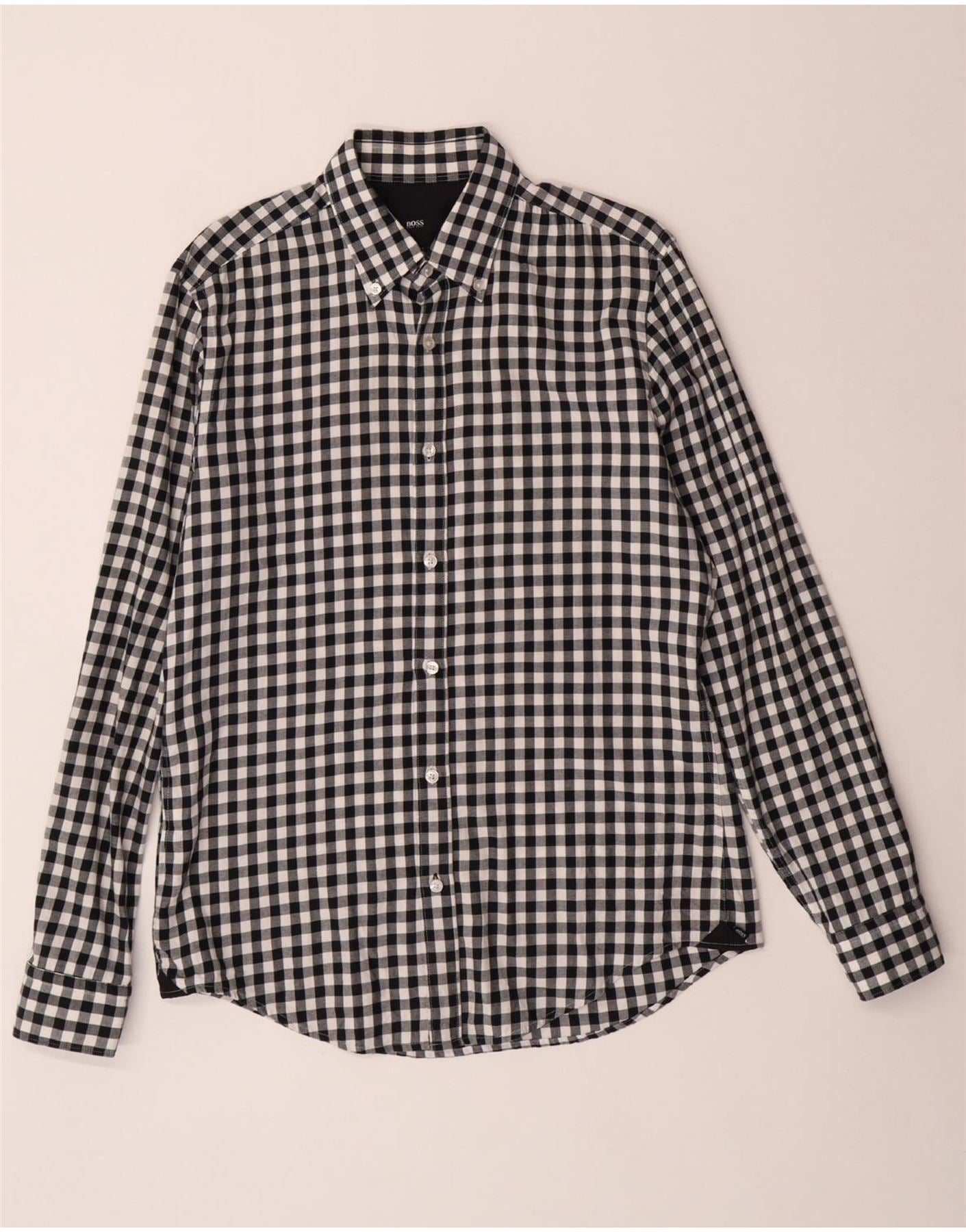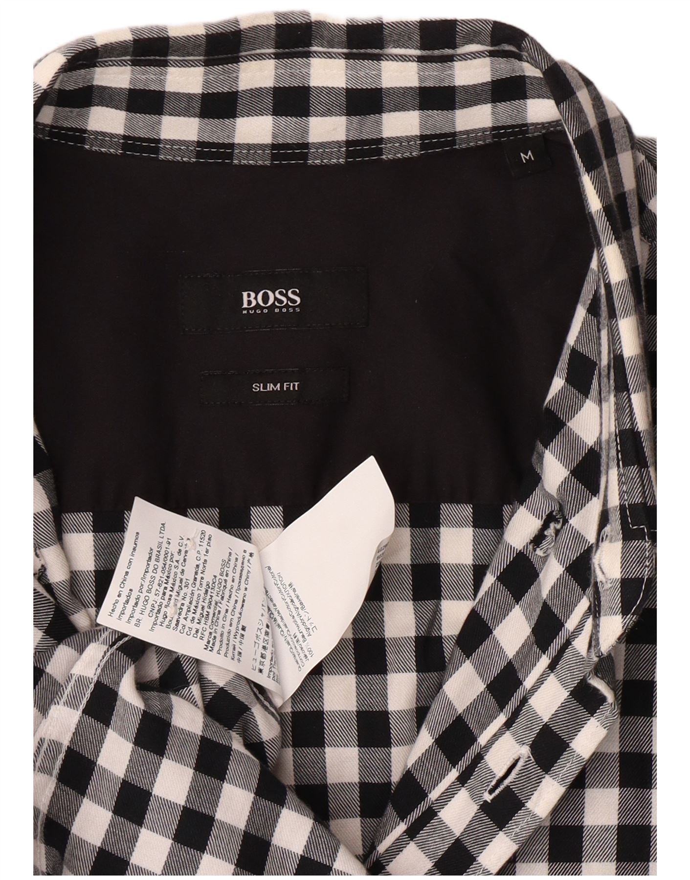 HUGO BOSS Mens Slim Fit Flannel Shirt Medium Black Gingham Cotton