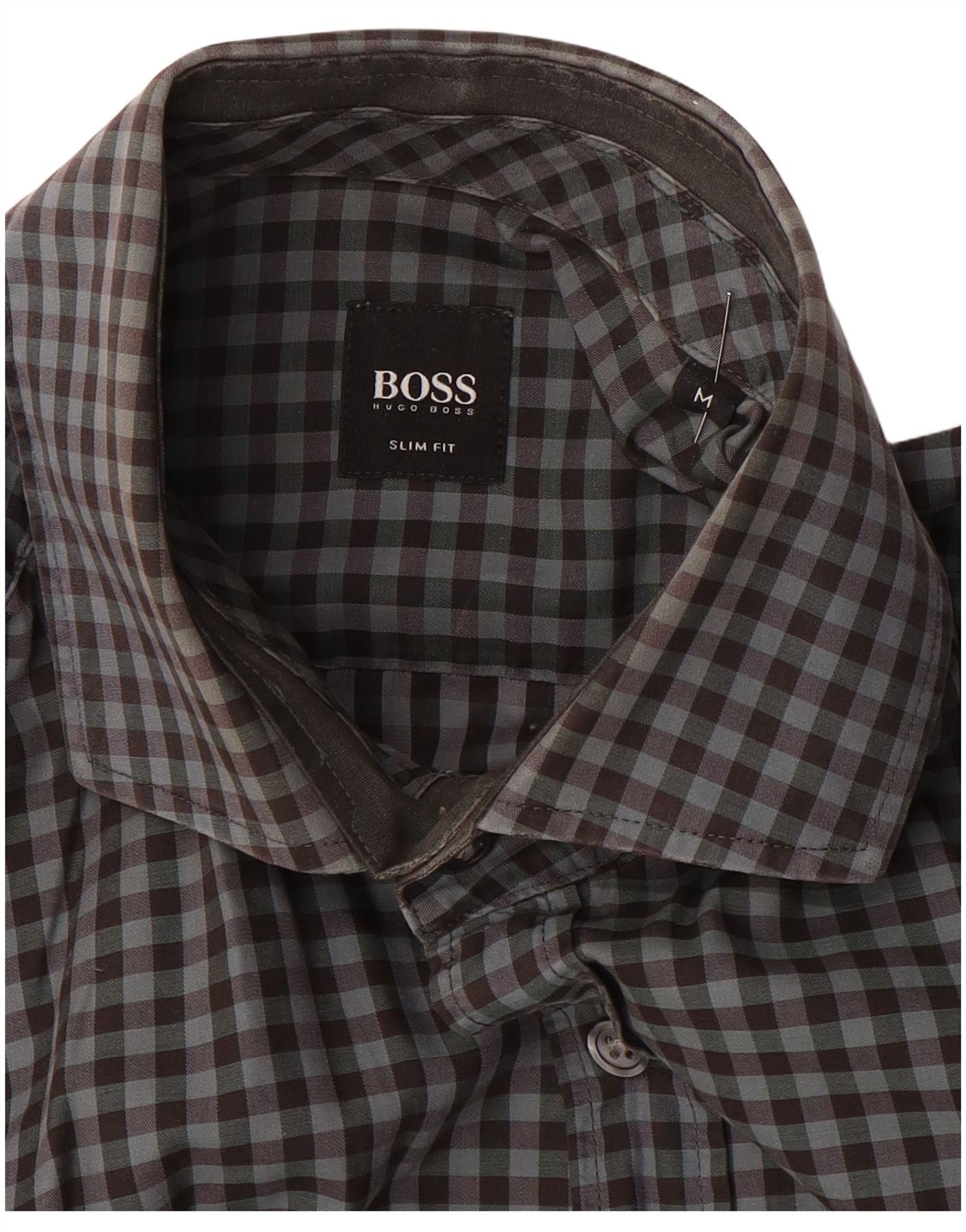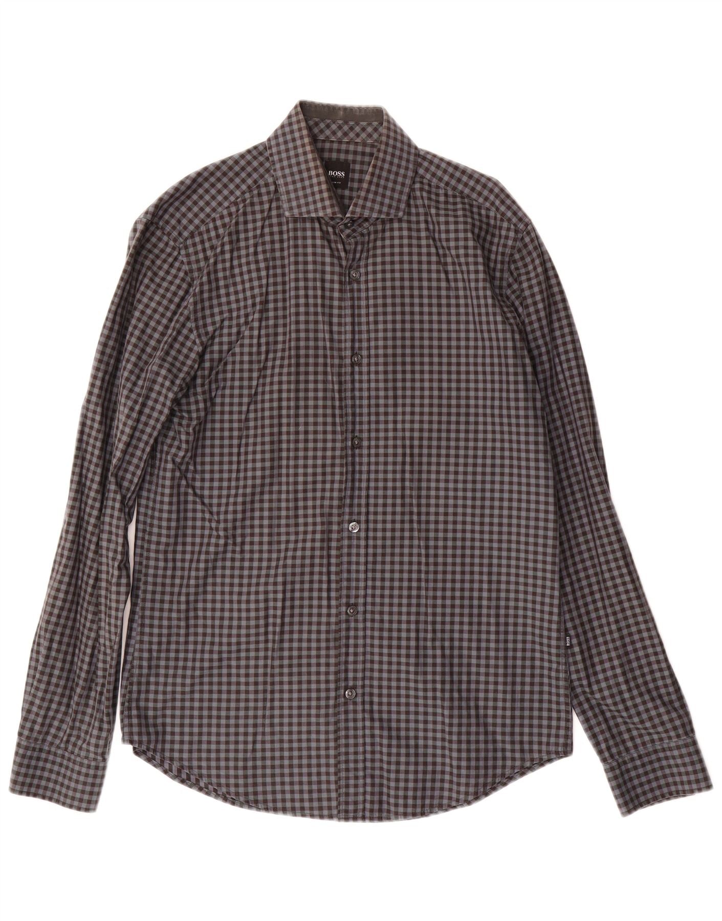 HUGO BOSS Mens Slim Fit Shirt Medium Grey Gingham