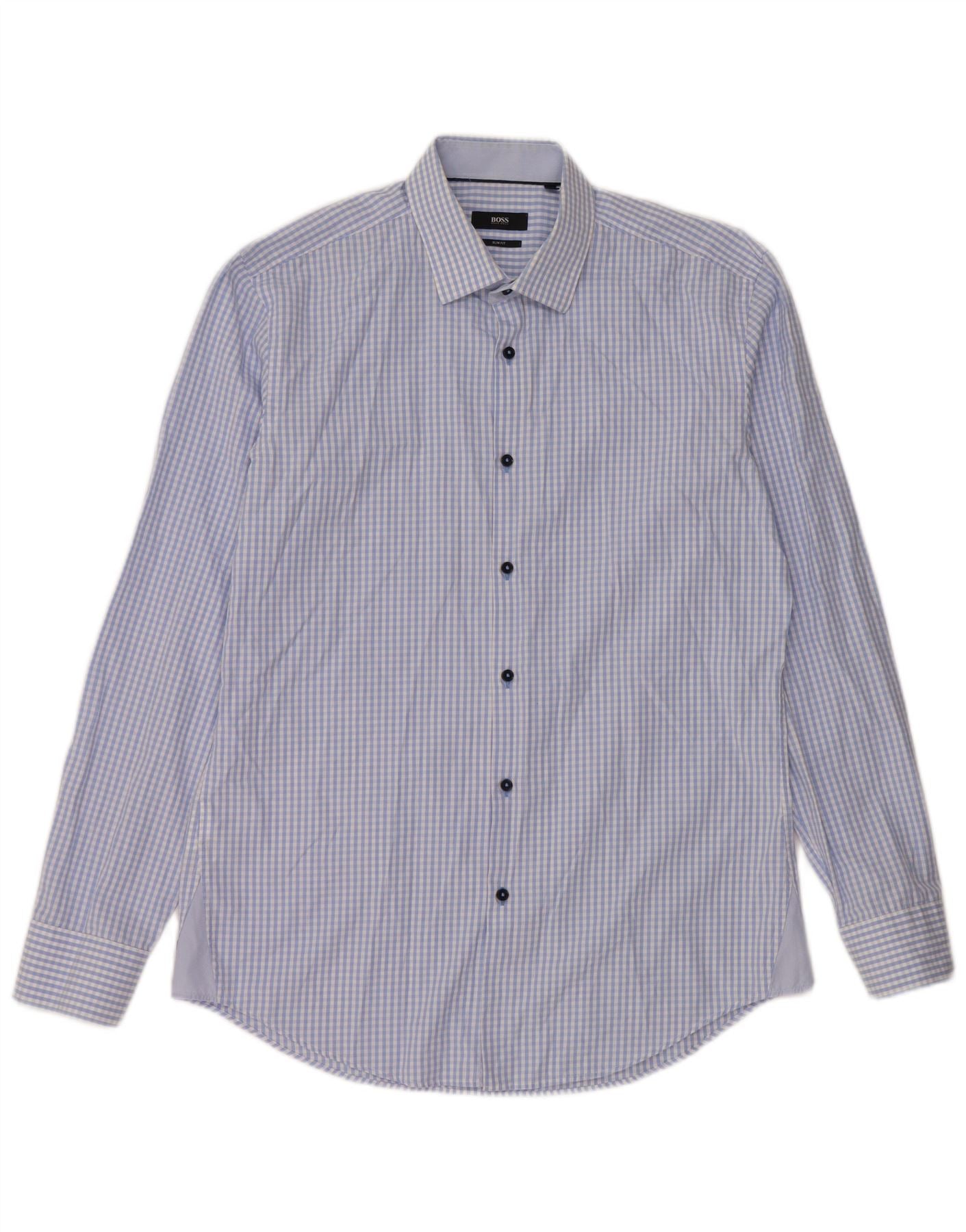 Hugo Boss Mens Slim Fit Shirt Size 41 16 Large Blue Gingham Cotton