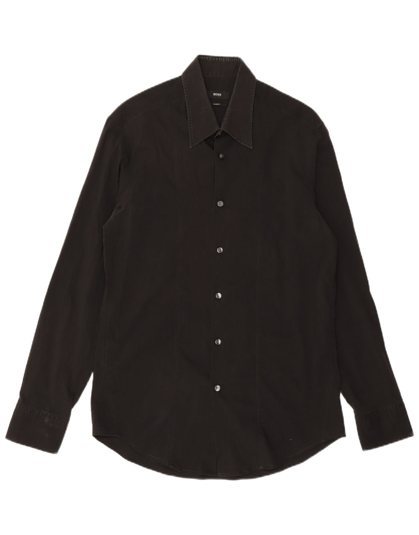 HUGO BOSS Mens Slim Fit Shirt Size 41/42 Large Black Cotton