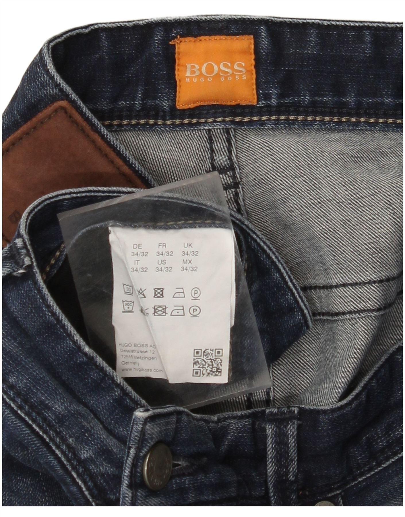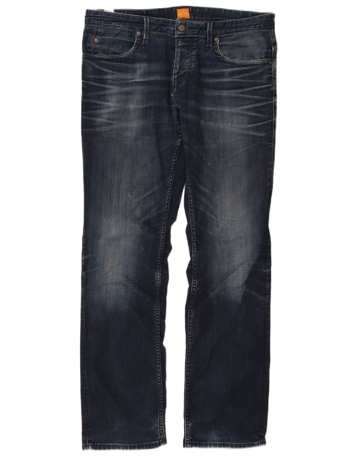 HUGO BOSS Mens Straight Jeans W34 L32 Navy Blue Cotton