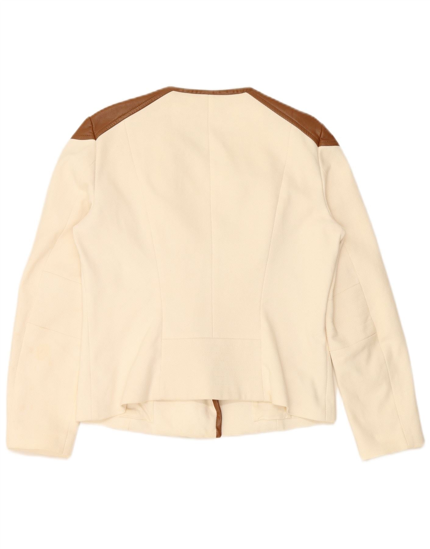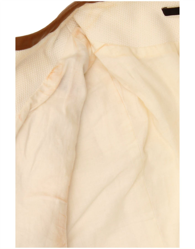 HUGO BOSS Womens Blazer Jacket UK 14 Large Off White Colourblock Cotton