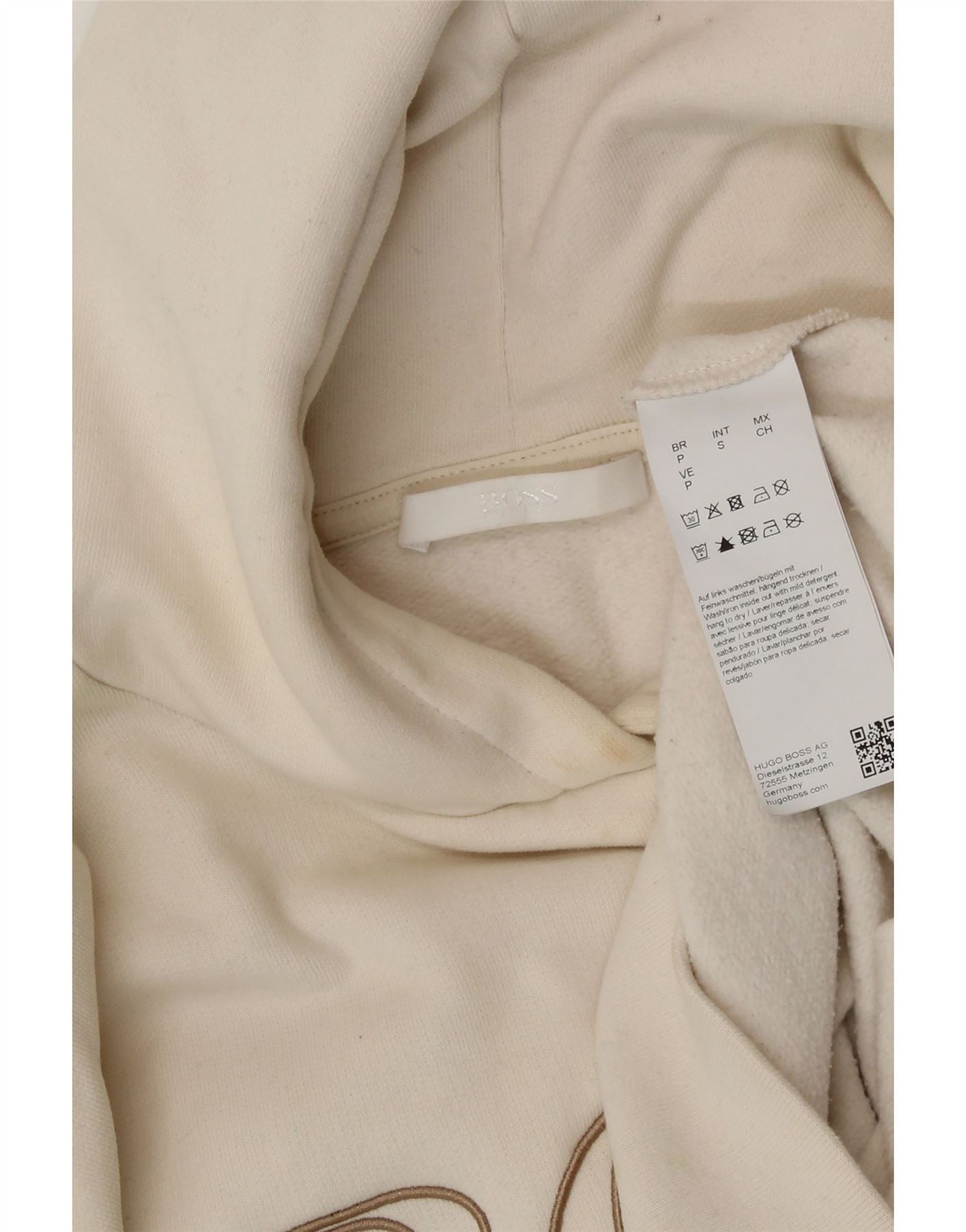 HUGO BOSS Womens Graphic Oversized Hoodie Jumper UK 10 Small Off White
