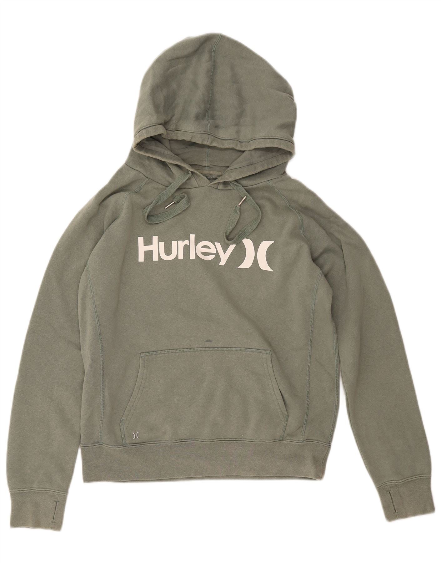 HURLEY Womens Graphic Hoodie Jumper UK 14 Medium Green Cotton
