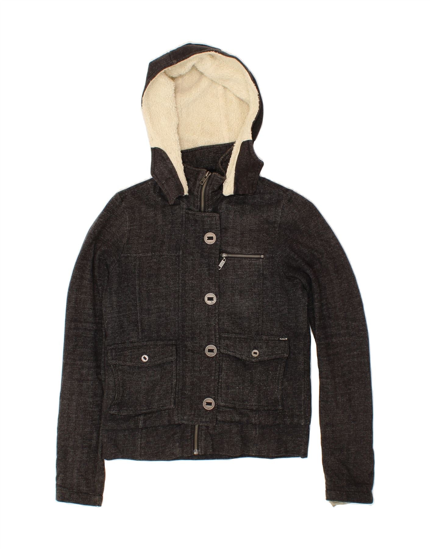 HURLEY Womens Hooded Bomber Jacket UK 6 XS Grey Flecked Cotton
