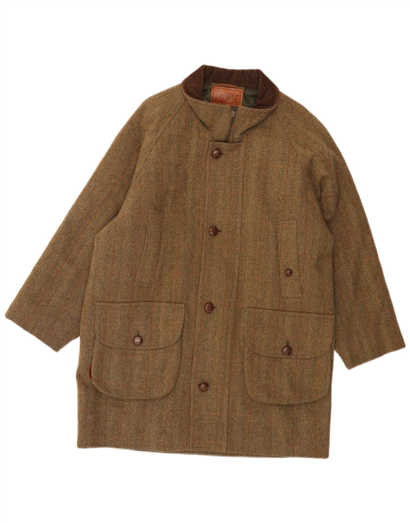 HUSKY Mens Overcoat IT 48 Medium Brown Herringbone