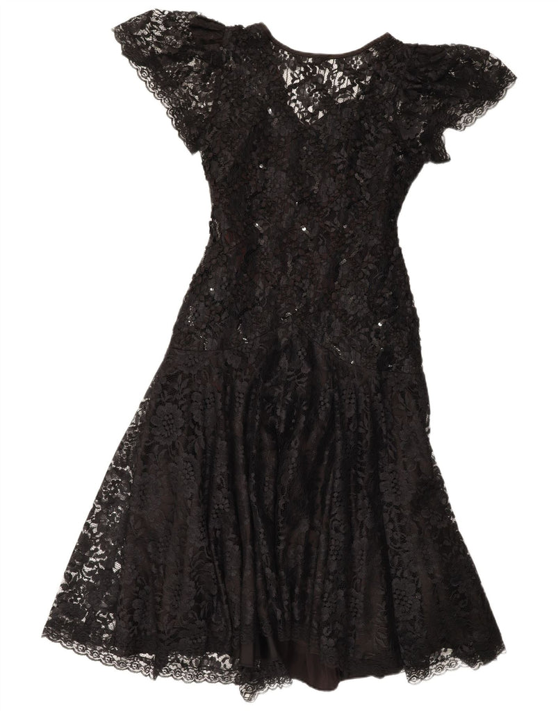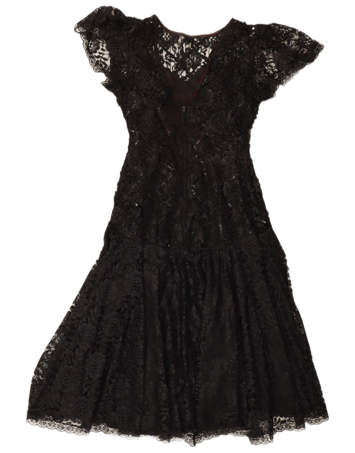 HW COLLECTIONS Womens Lace A-Line Dress UK 8 Small Black Acetate