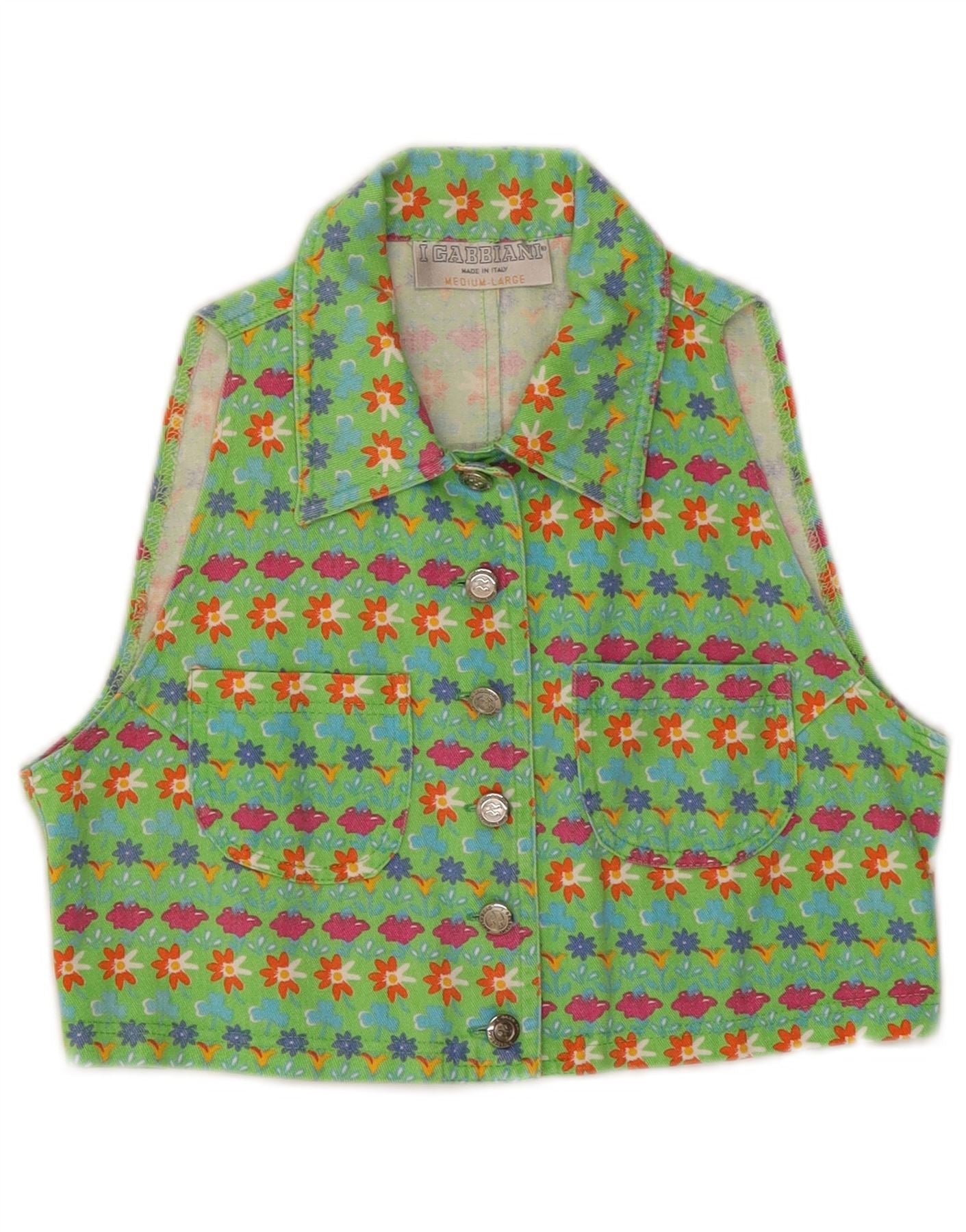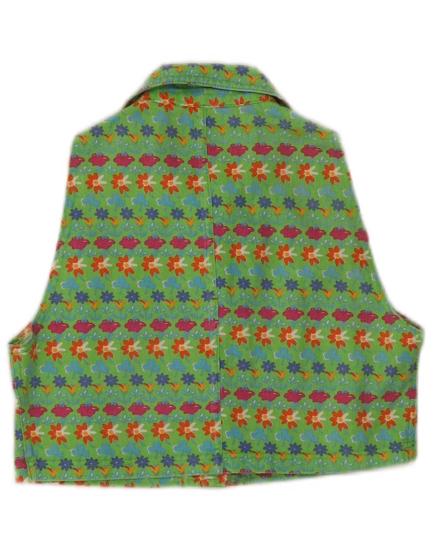 I GABBIANI Girls Crop Denim Gilet 9-10 Years Medium Green Floral