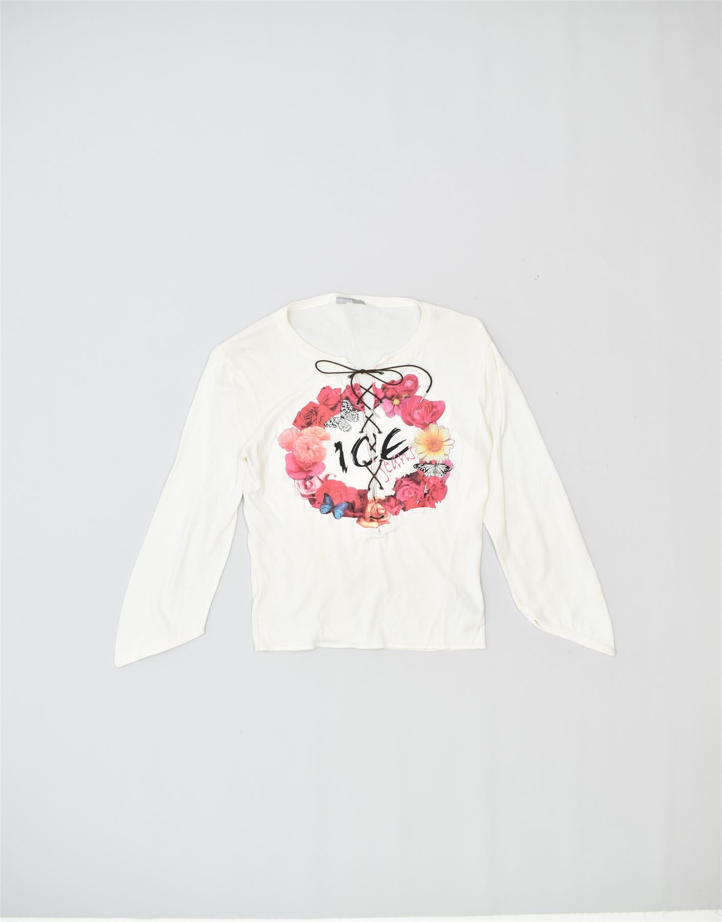 ICEBERG Womens Graphic Crew Neck Jumper Sweater UK 10 Small White Floral