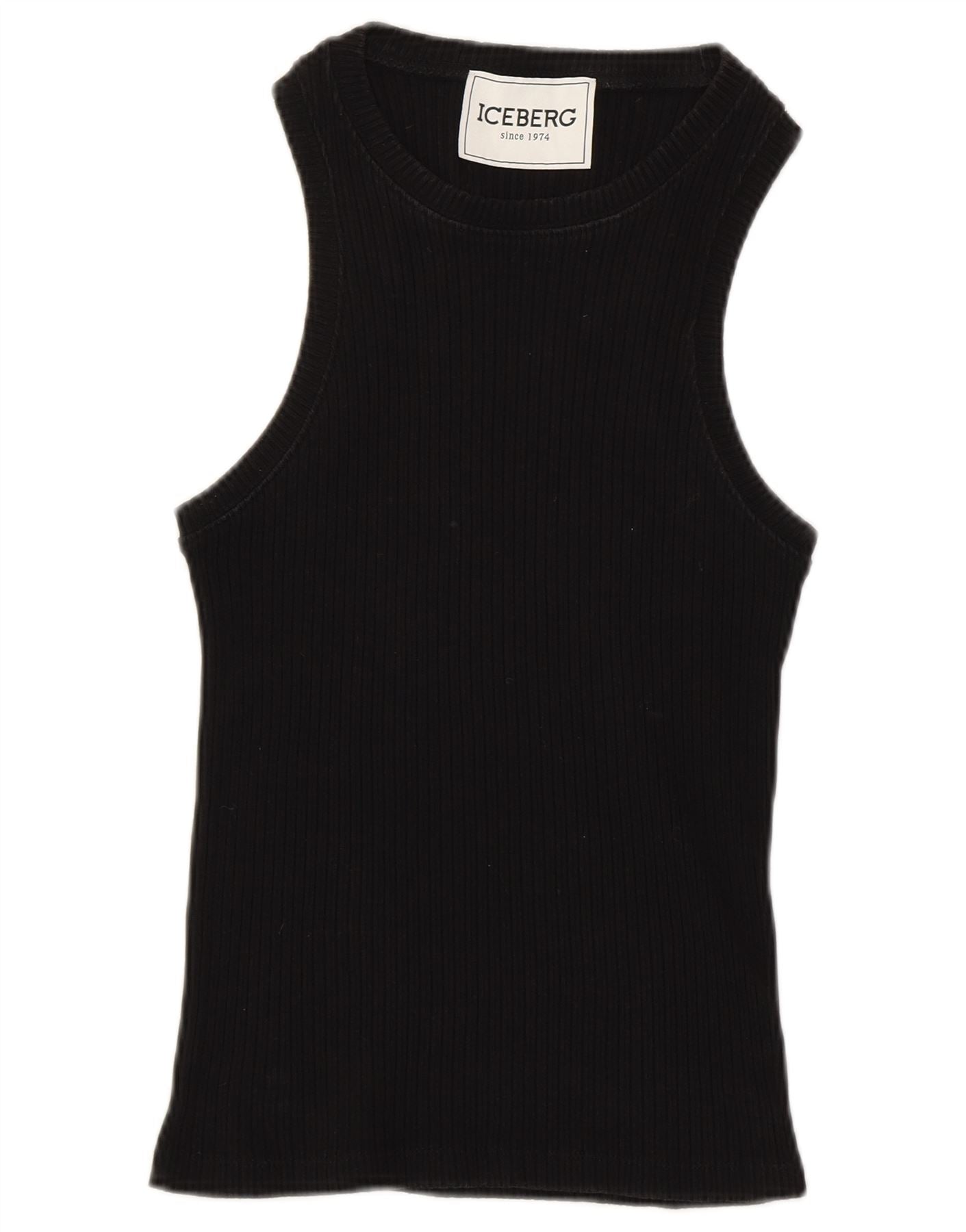 ICEBERG Womens Vest Top IT 42 Medium Black Cotton