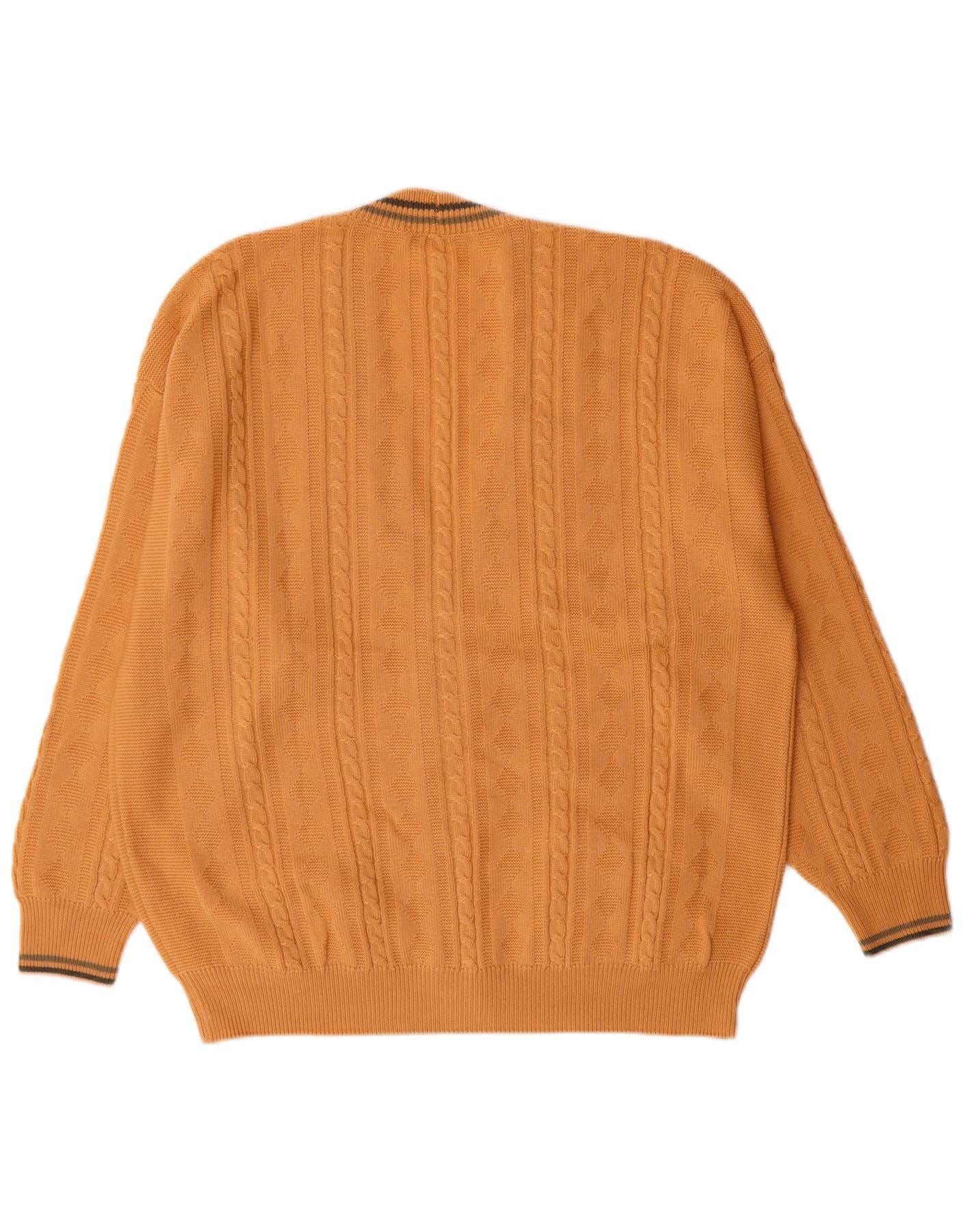 IL GRANCHIO Mens Cardigan Sweater Large Yellow Virgin Wool Classic
