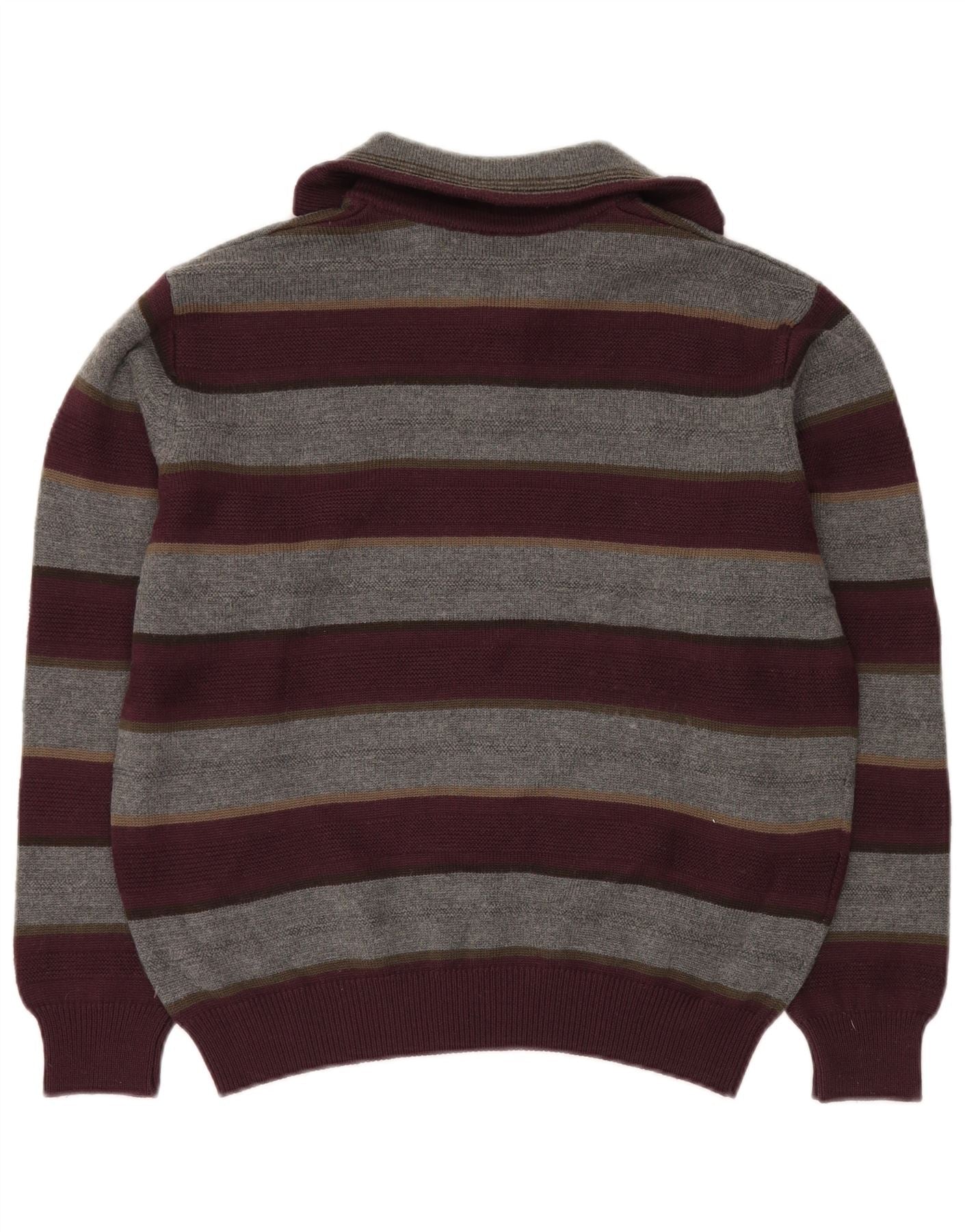 IL GRANCHIO Womens Zip Neck Jumper Sweater UK 18 XL Burgundy Striped