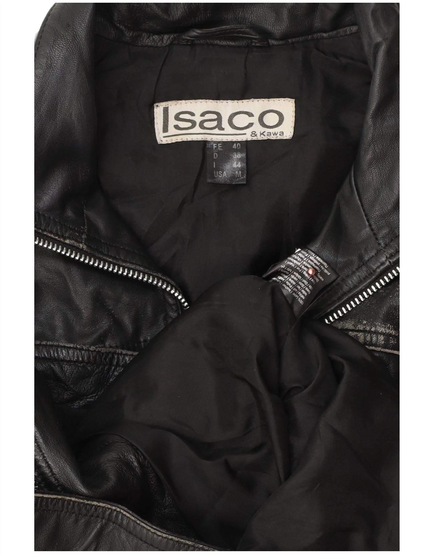 Isaco & Kawa Womens Biker Leather Jacket IT 44 Medium Black Leather