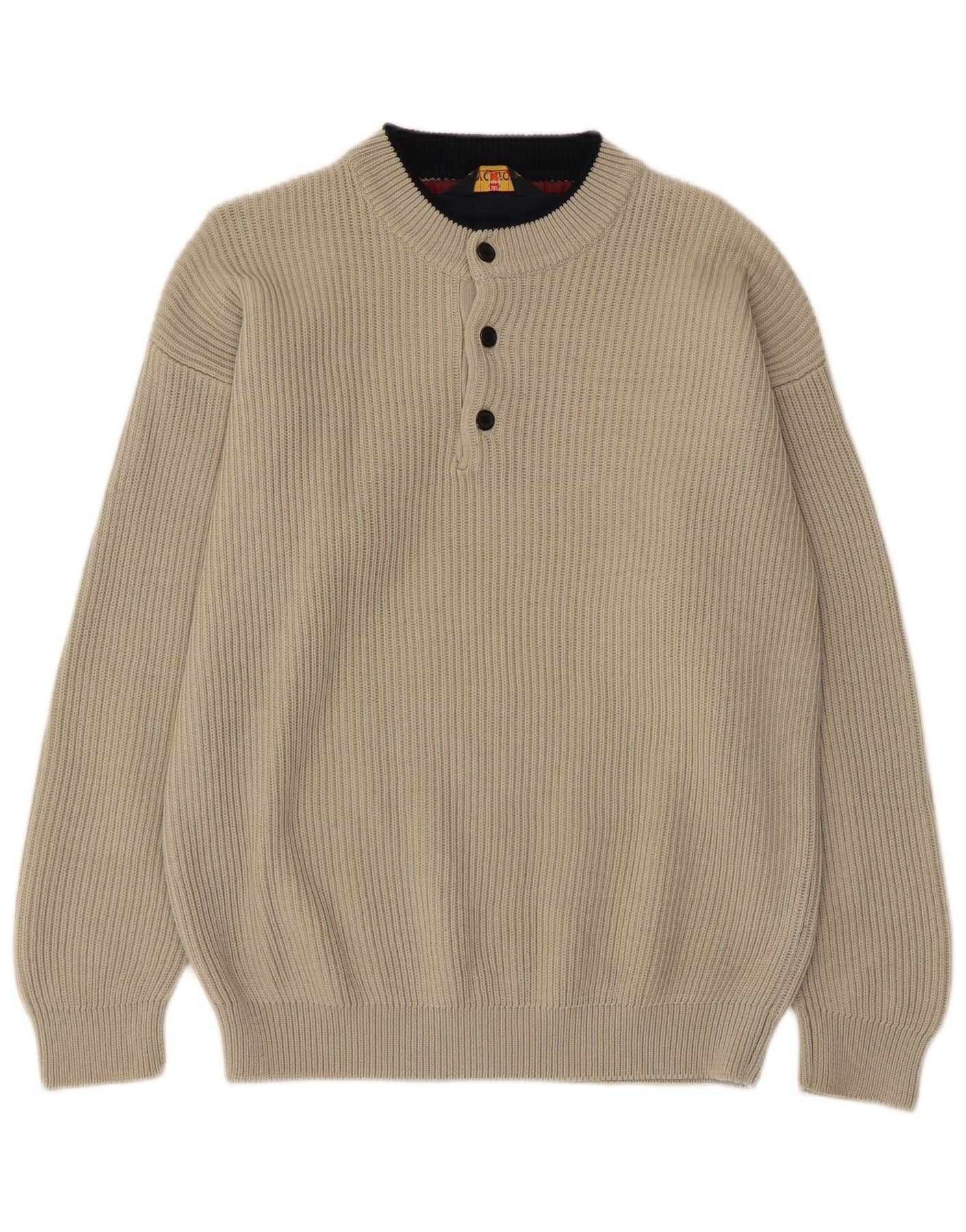 IVY OXFORD Mens Button Neck Jumper Sweater Medium Off White Wool
