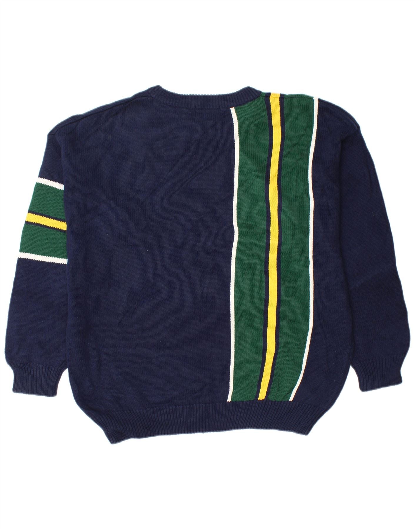 IZOD Mens Crew Neck Jumper Sweater Large Navy Blue Colourblock Cotton