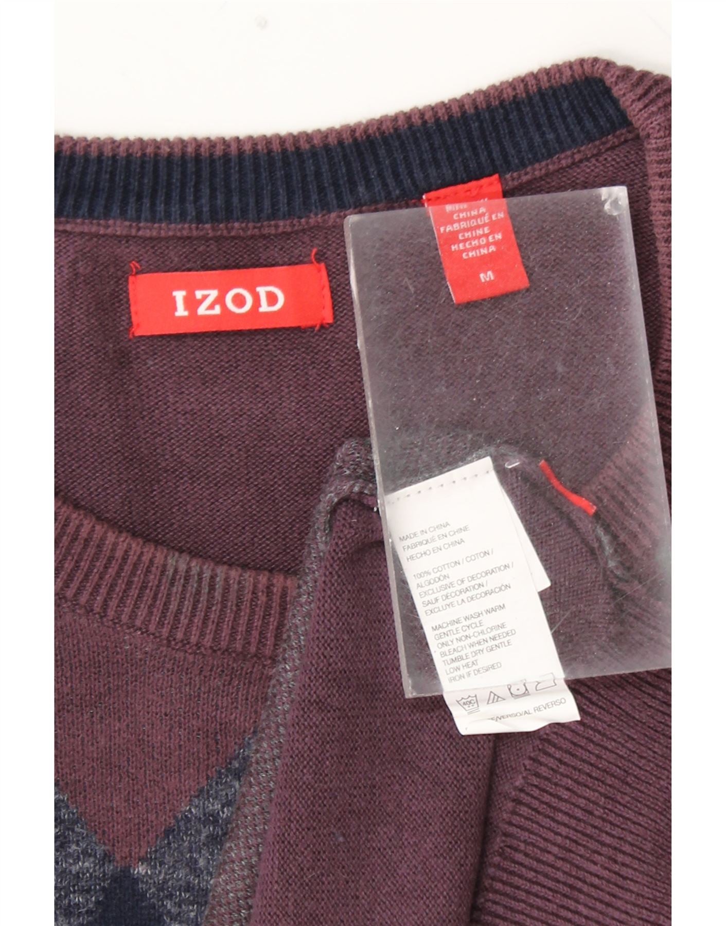IZOD Mens Crew Neck Jumper Sweater Medium Burgundy Argyle/Diamond Cotton