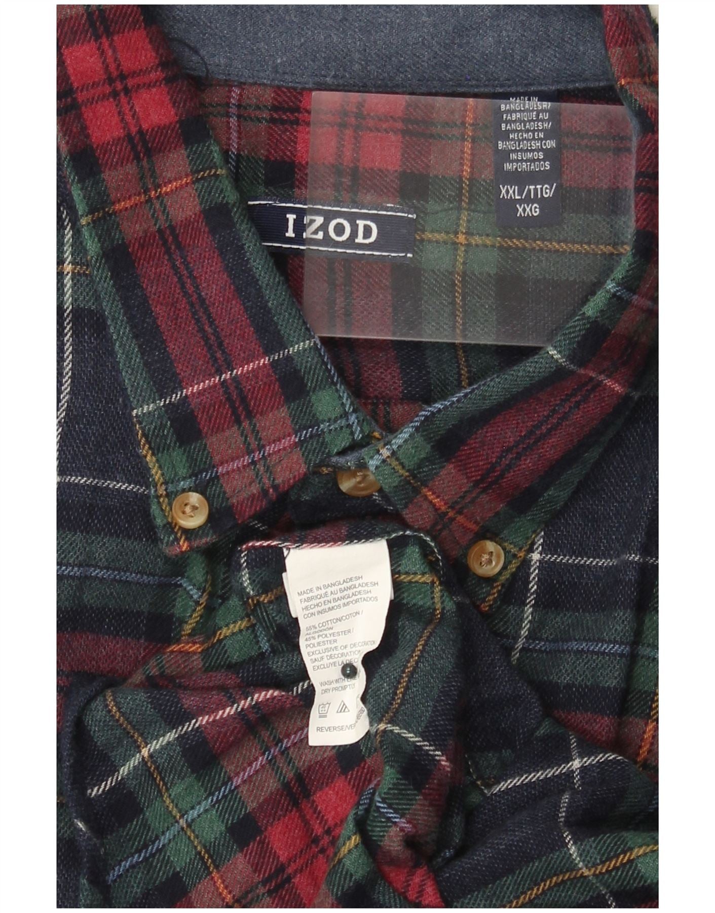 IZOD Mens Flannel Shirt 2XL Navy Blue Check Cotton