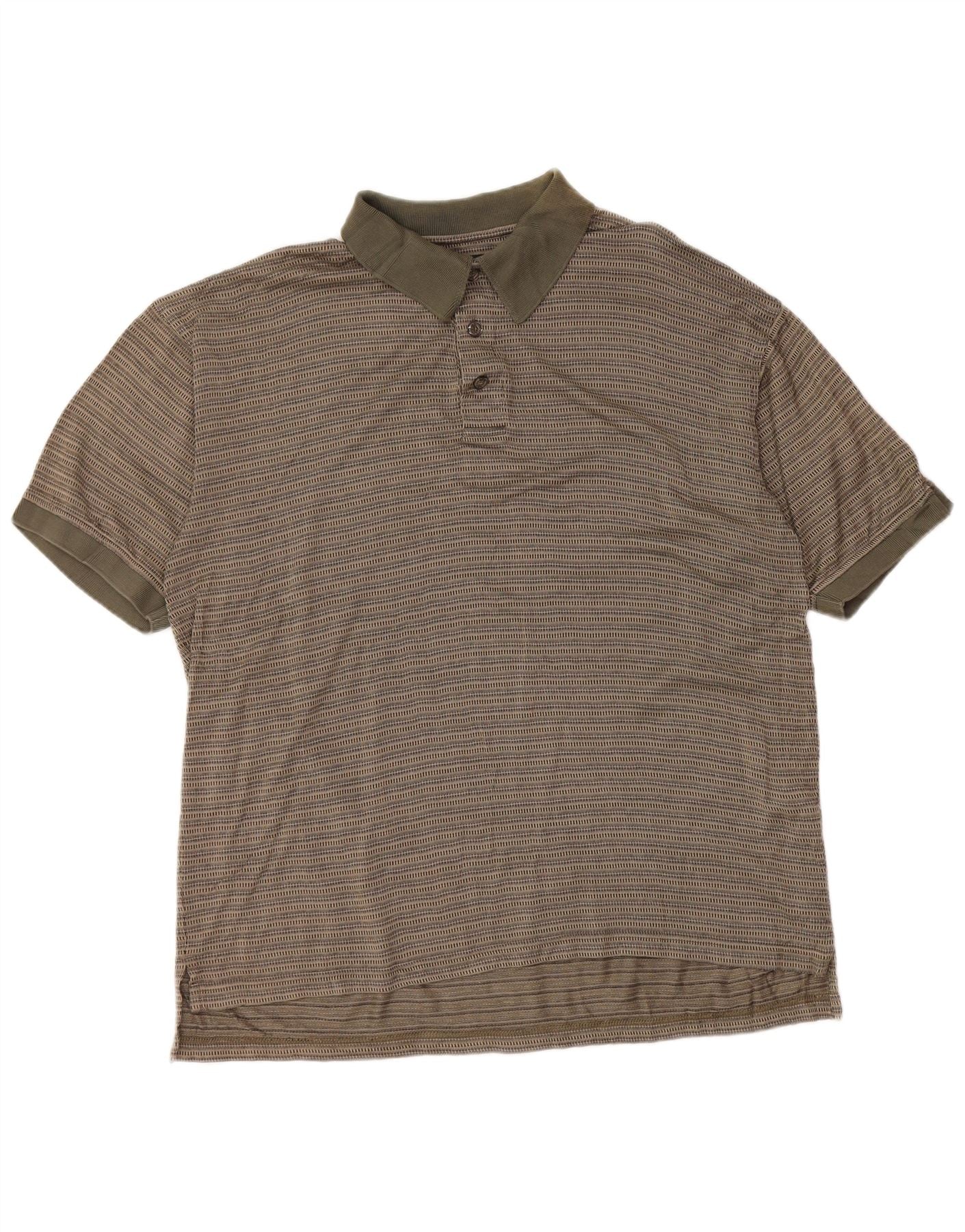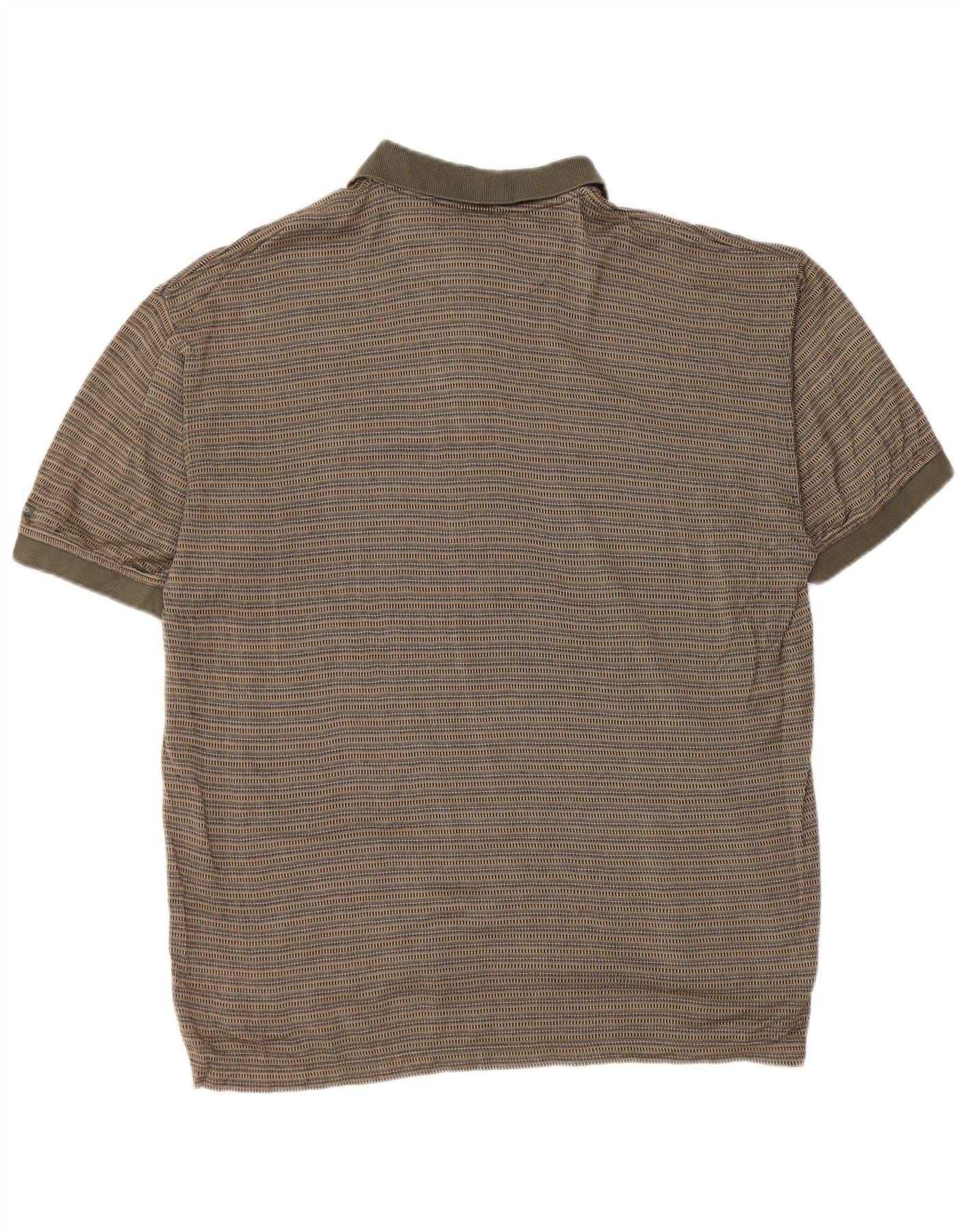IZOD Mens Polo Shirt Medium Khaki Striped Cotton