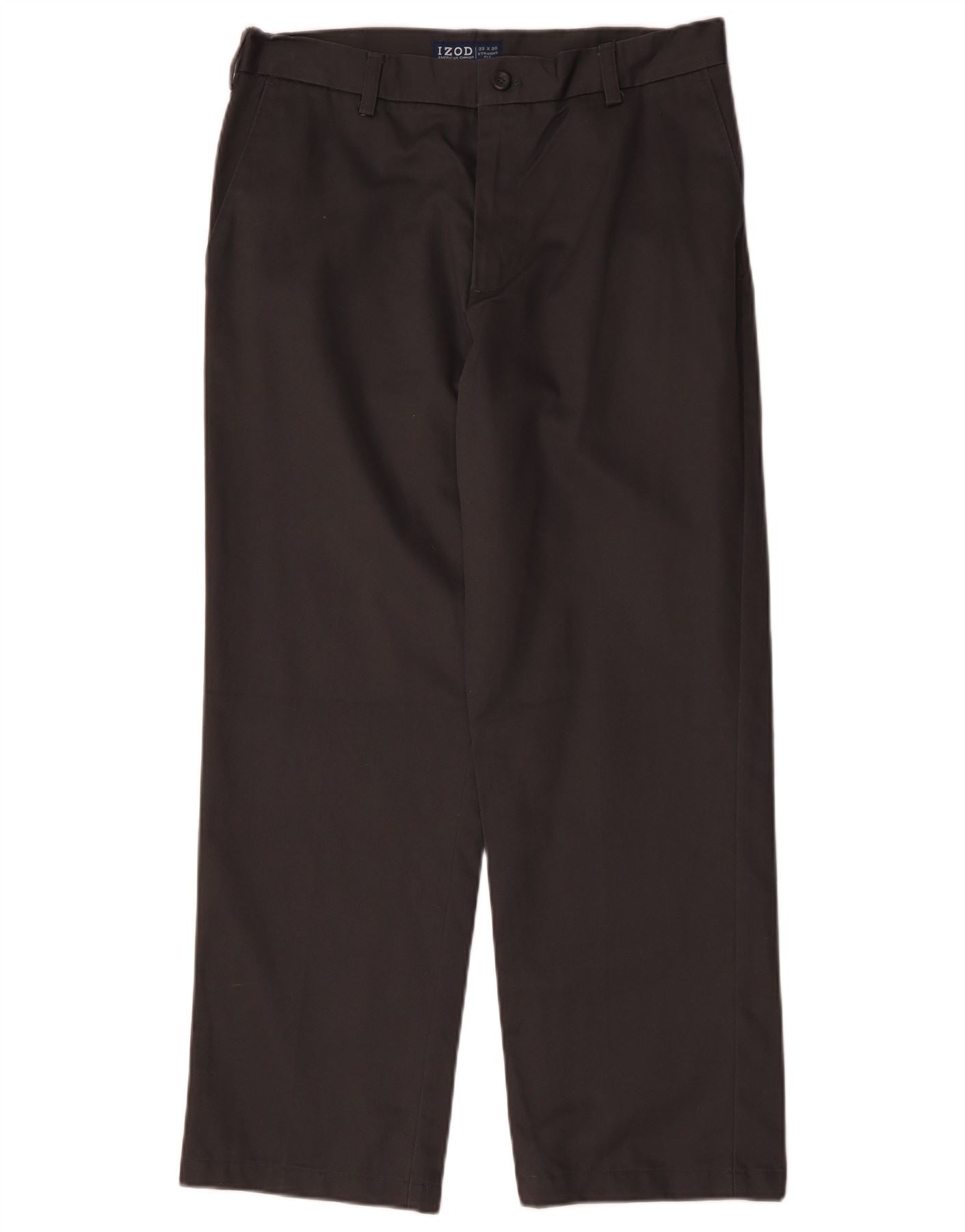 IZOD Mens Straight Chino Trousers W33 L30 Grey Cotton