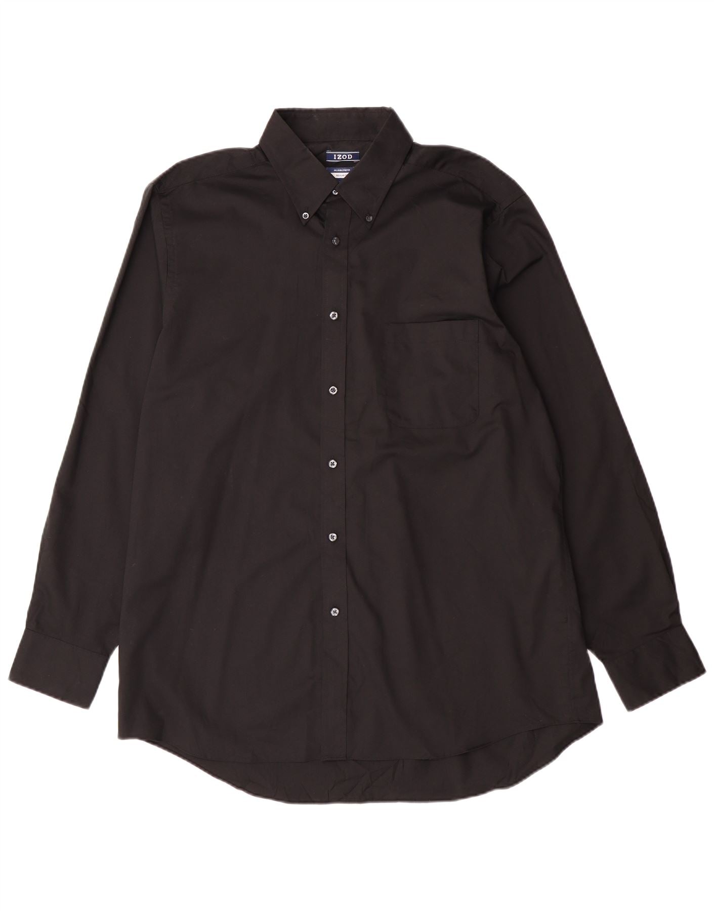 Izod Mens Stretch Regular Fit Shirt Size 16 16 1/2 Large Black Cotton