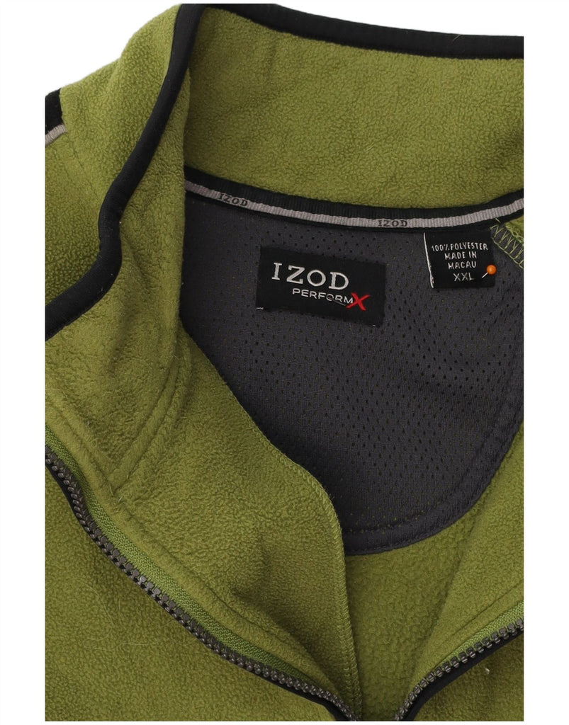 IZOD Mens Zip Neck Fleece Jumper 2XL Green Colourblock Polyester