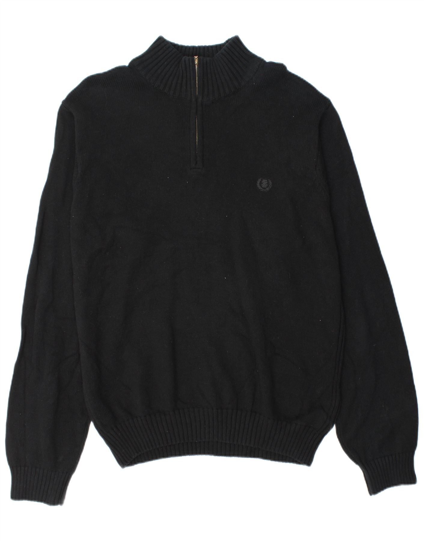Izod Mens Zip Neck Jumper Sweater XL Black Cotton