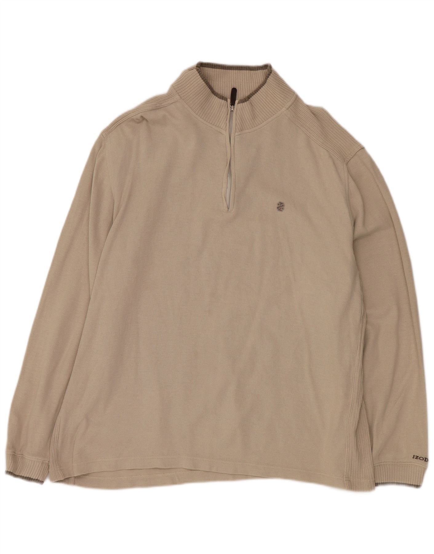 Izod Mens Zip Neck Top Long Sleeve Large Beige Cotton