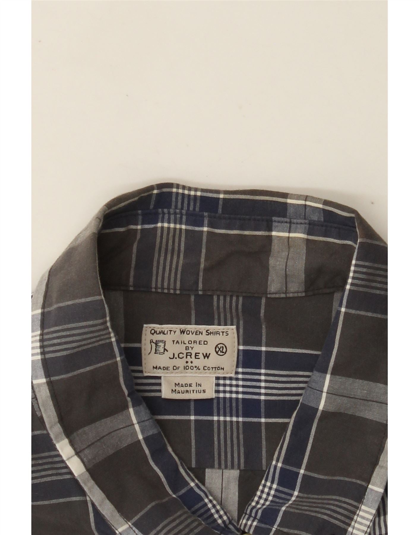 - AI Description: This J. Crew mens shirt is crafted from soft 100 percent cotton woven fabric, featuring a classic plaid pattern in grey, blue, and white. It has a collared neckline and a full button-up front. Long sleeves with buttoned cuffs complete the design. The regular fit ensures comfortable wear. A single chest pocket adds practical detail.