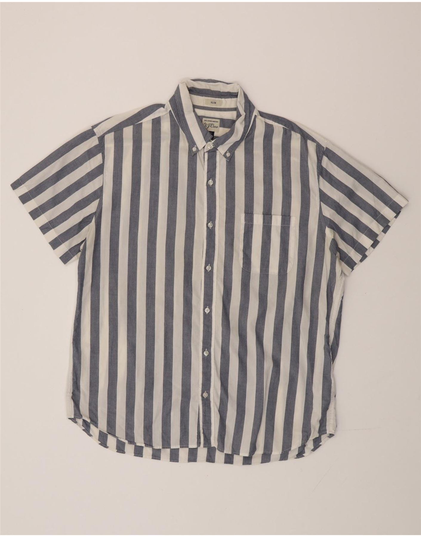J. CREW Mens Short Sleeve Slim Shirt XL Blue Striped Cotton