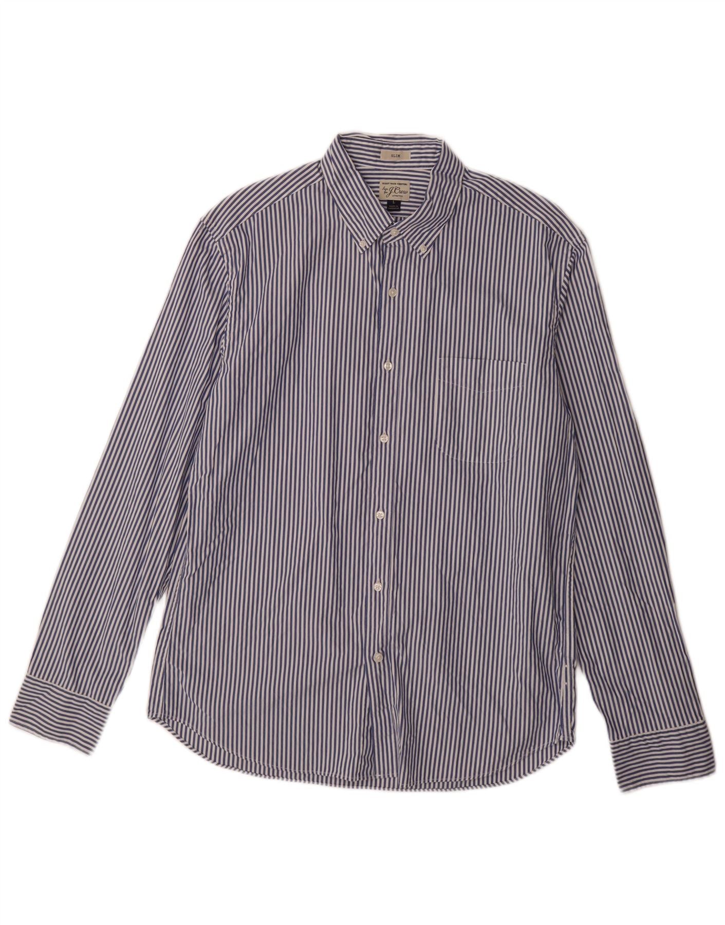 J. CREW Mens Slim Shirt Large Navy Blue Pinstripe Cotton