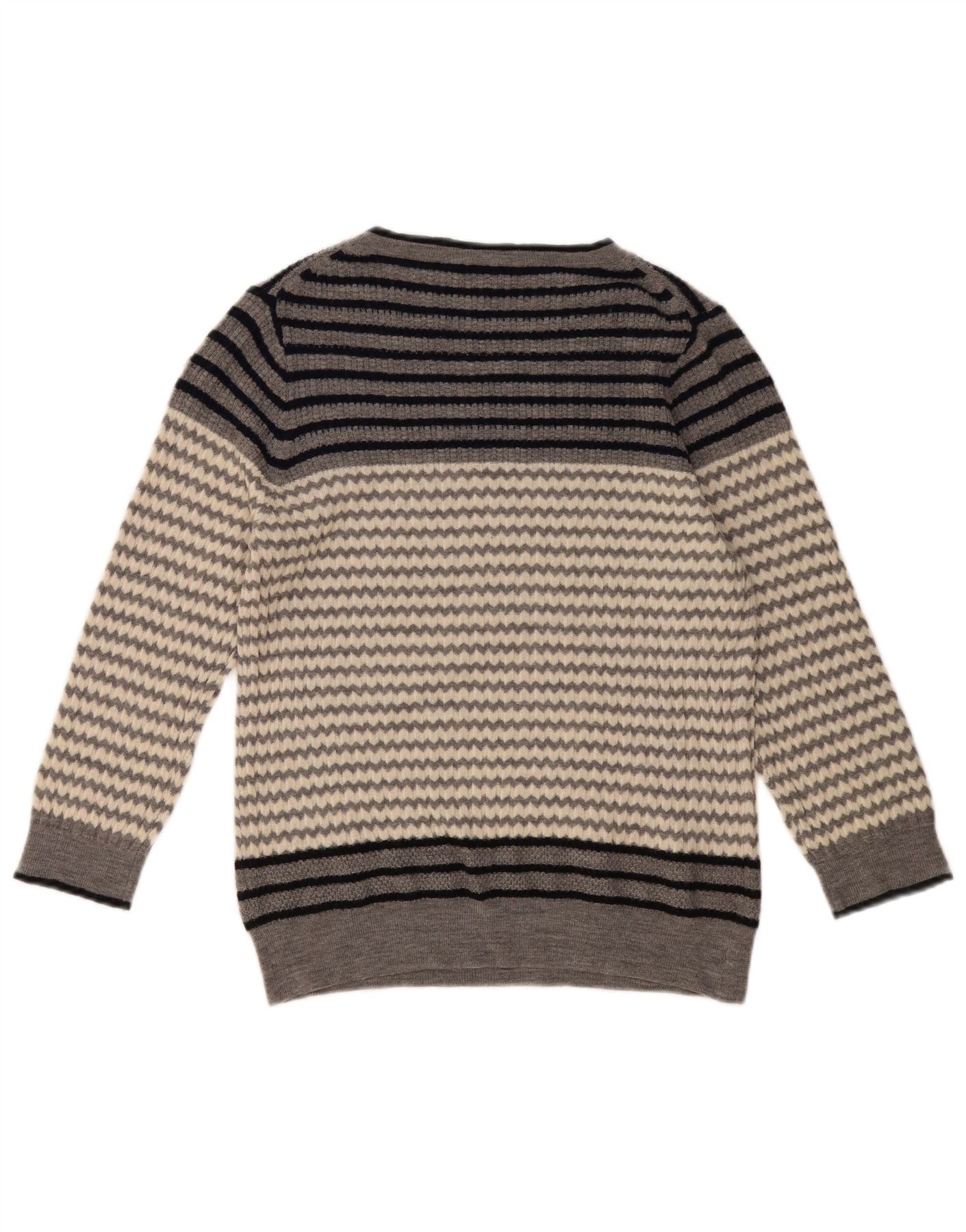 J. CREW Womens Boat Neck Jumper Sweater UK 18 XL Grey Striped Merino Wool