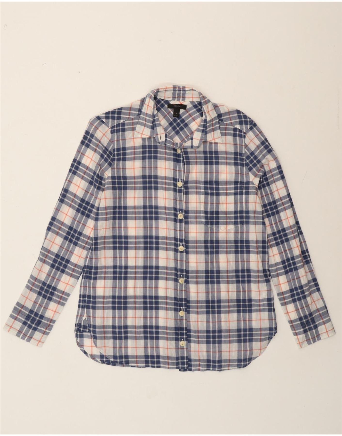 J. CREW Womens Shirt US 6 Medium Blue Check Cotton
