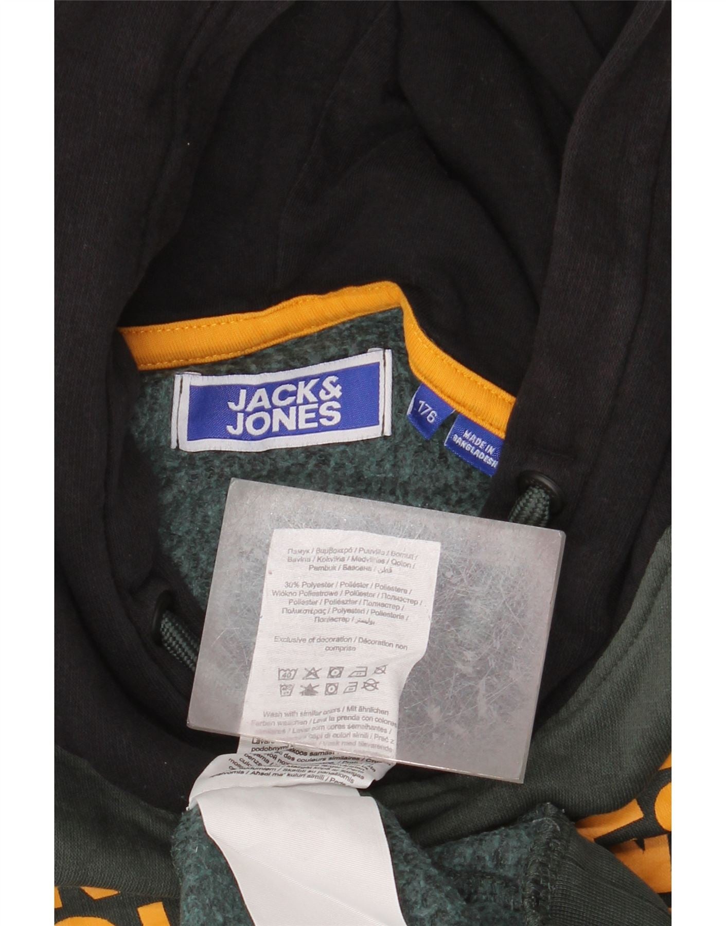 JACK & JONES Boys Graphic Hoodie Jumper 15-16 Years Green Colourblock