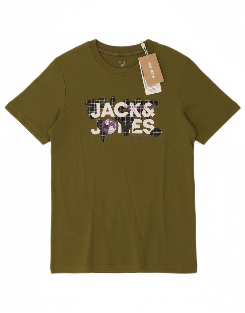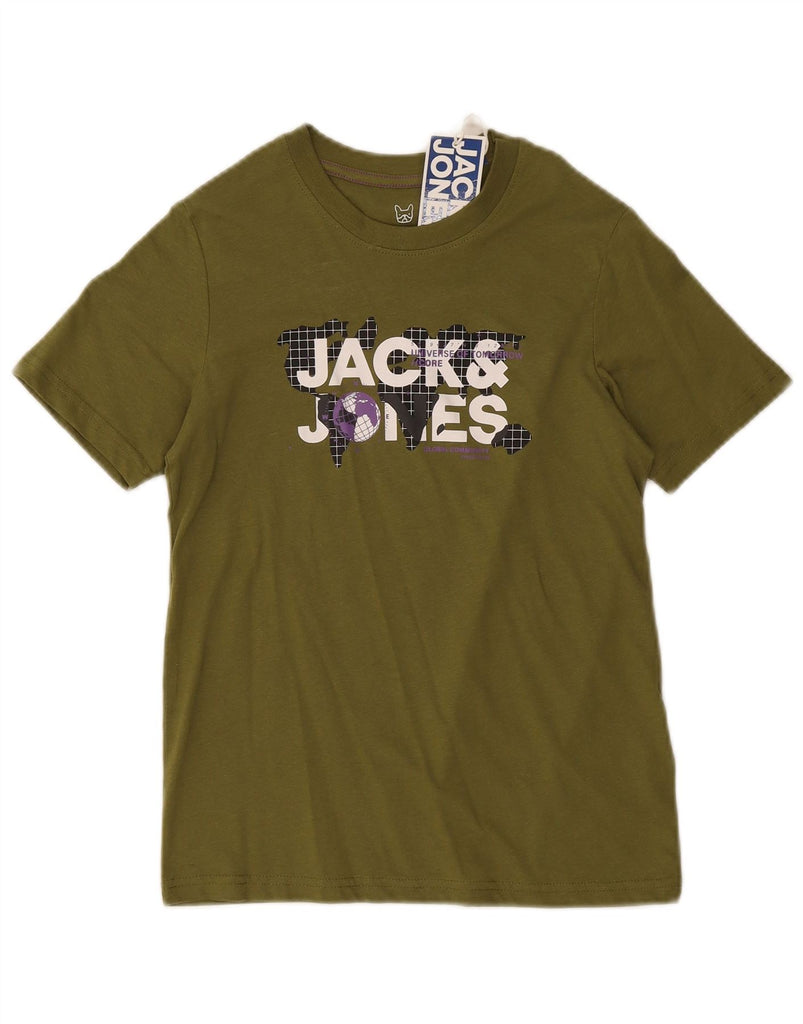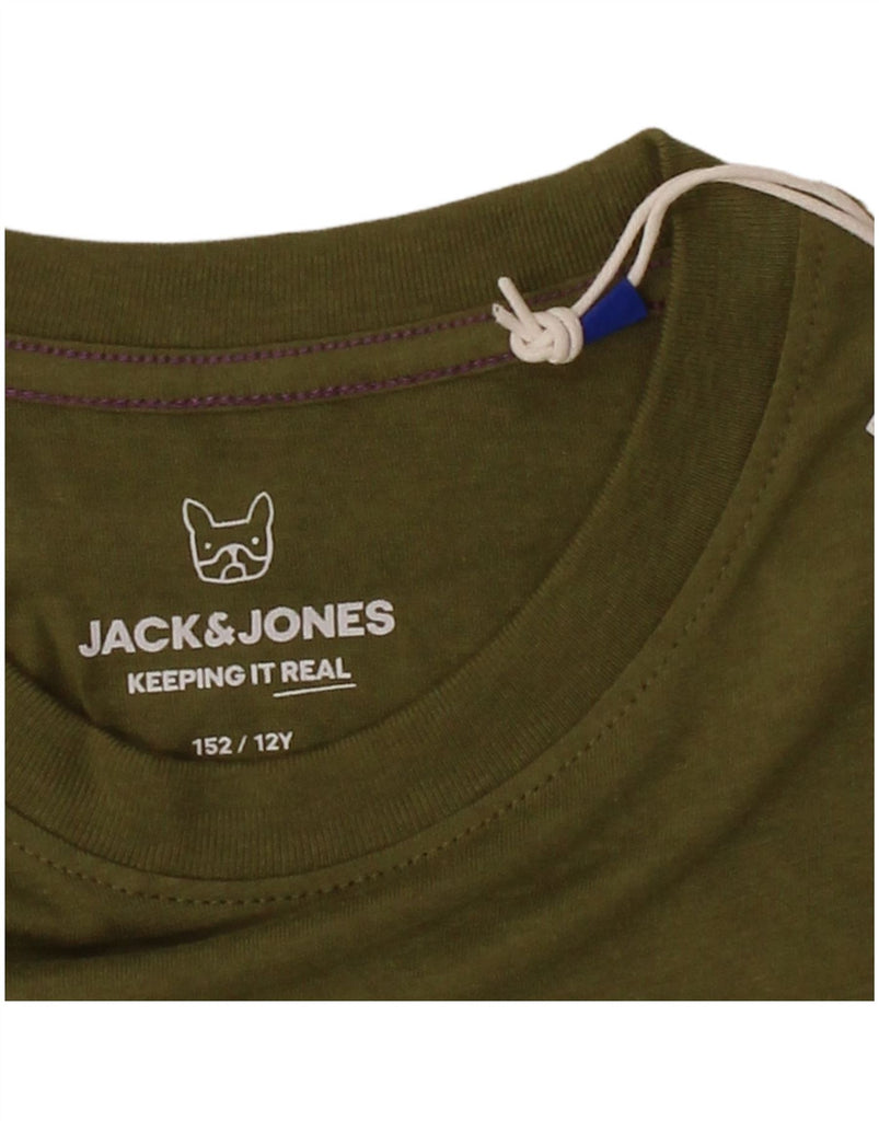 JACK & JONES Boys Graphic T-Shirt Top 11-12 Years Khaki Cotton