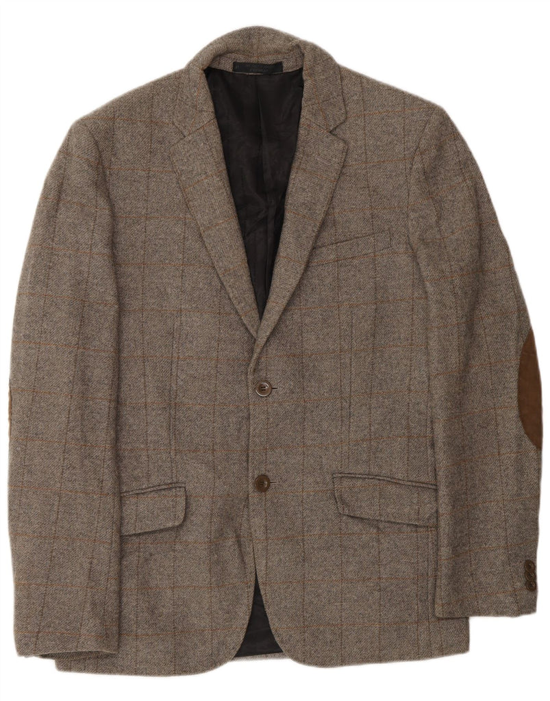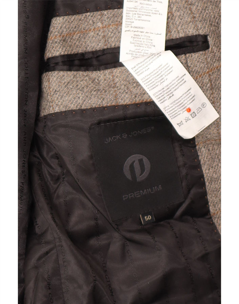 JACK & JONES Mens 2 Button Blazer Jacket IT 50 Large Grey Check Wool