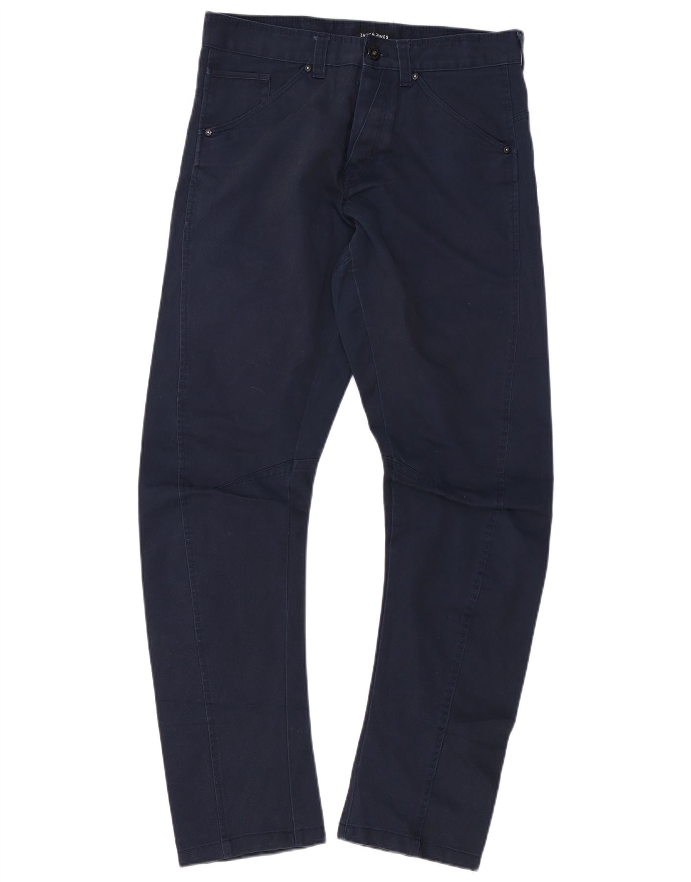 JACK & JONES Mens Banana Straight Casual Trousers W32 L32 Navy Blue Cotton