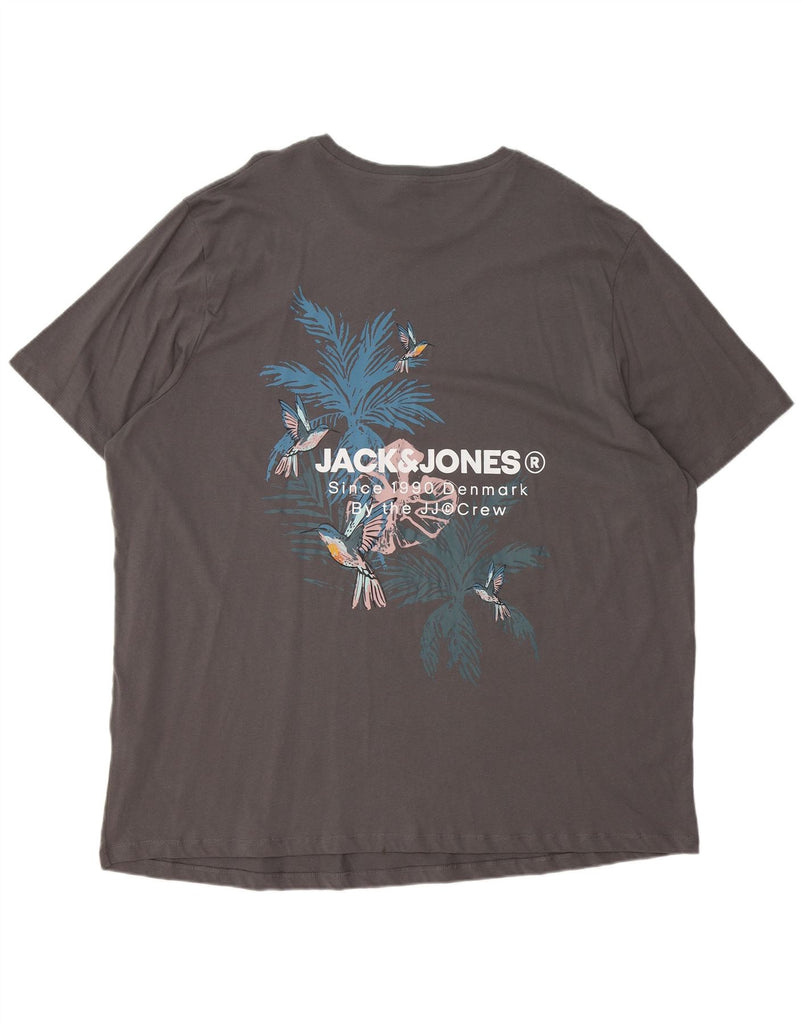 JACK & JONES Mens Big & Tall Graphic T-Shirt Top 3XL Grey Cotton