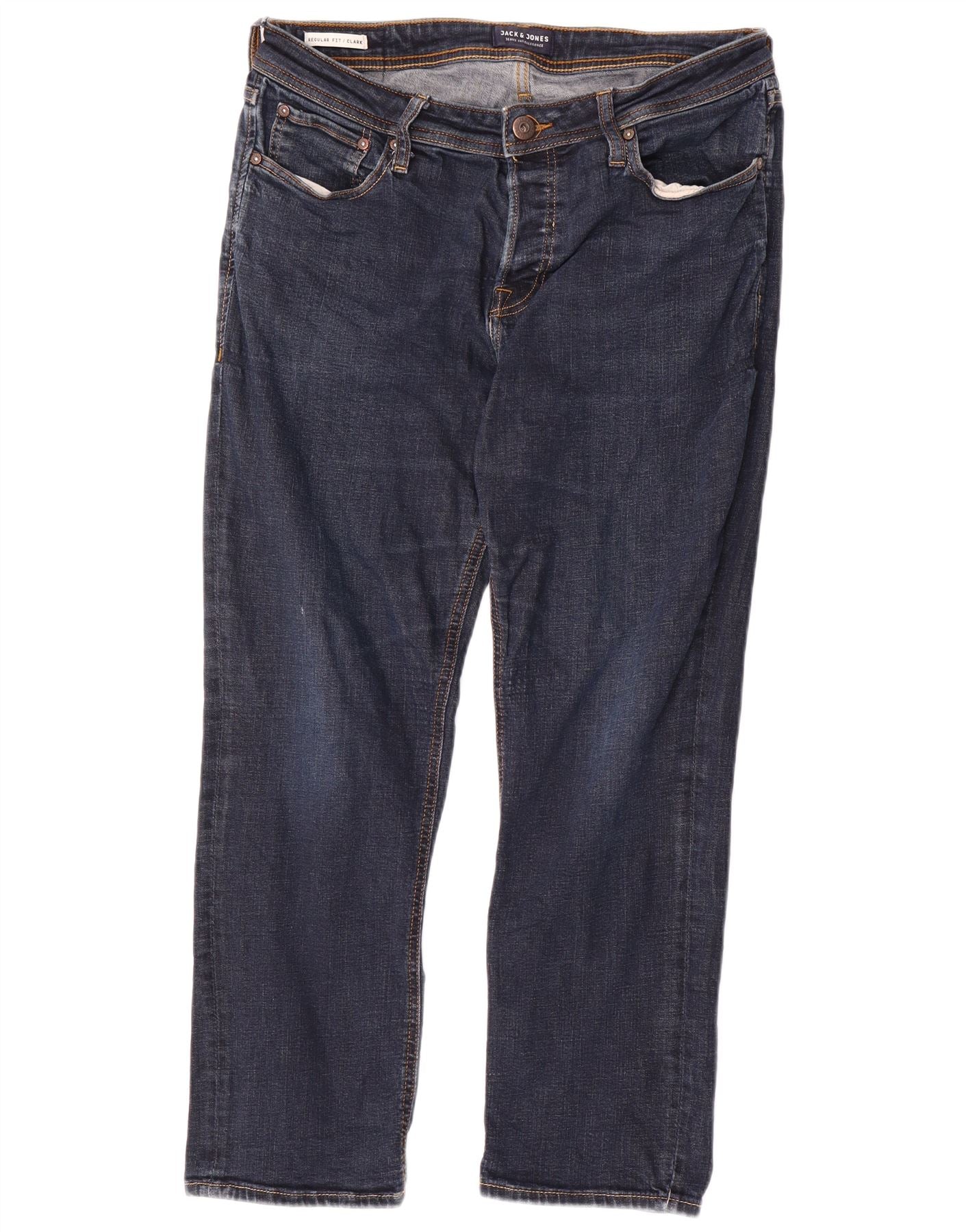 JACK & JONES Mens Clark Regular Fit Straight Jeans W34 L30 Blue Cotton