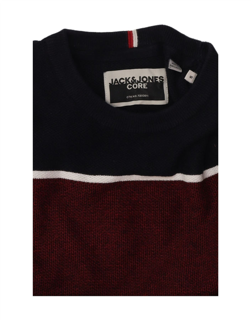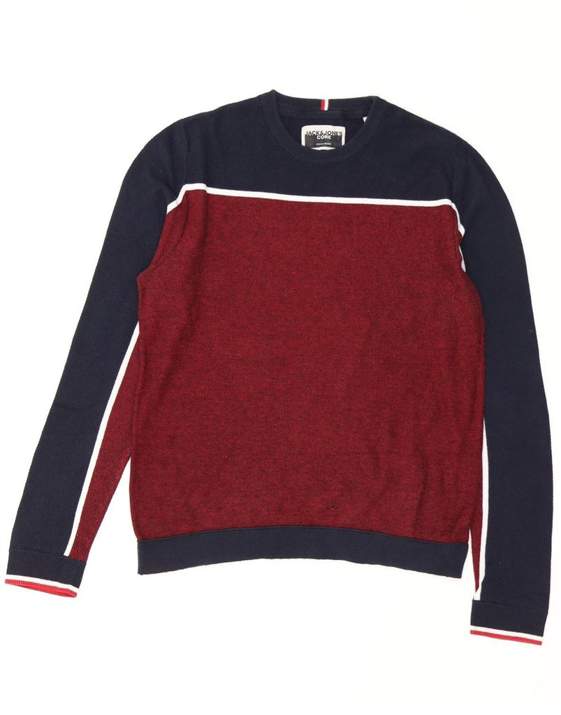 JACK & JONES Mens Core Crew Neck Jumper Sweater Small Burgundy Colourblock