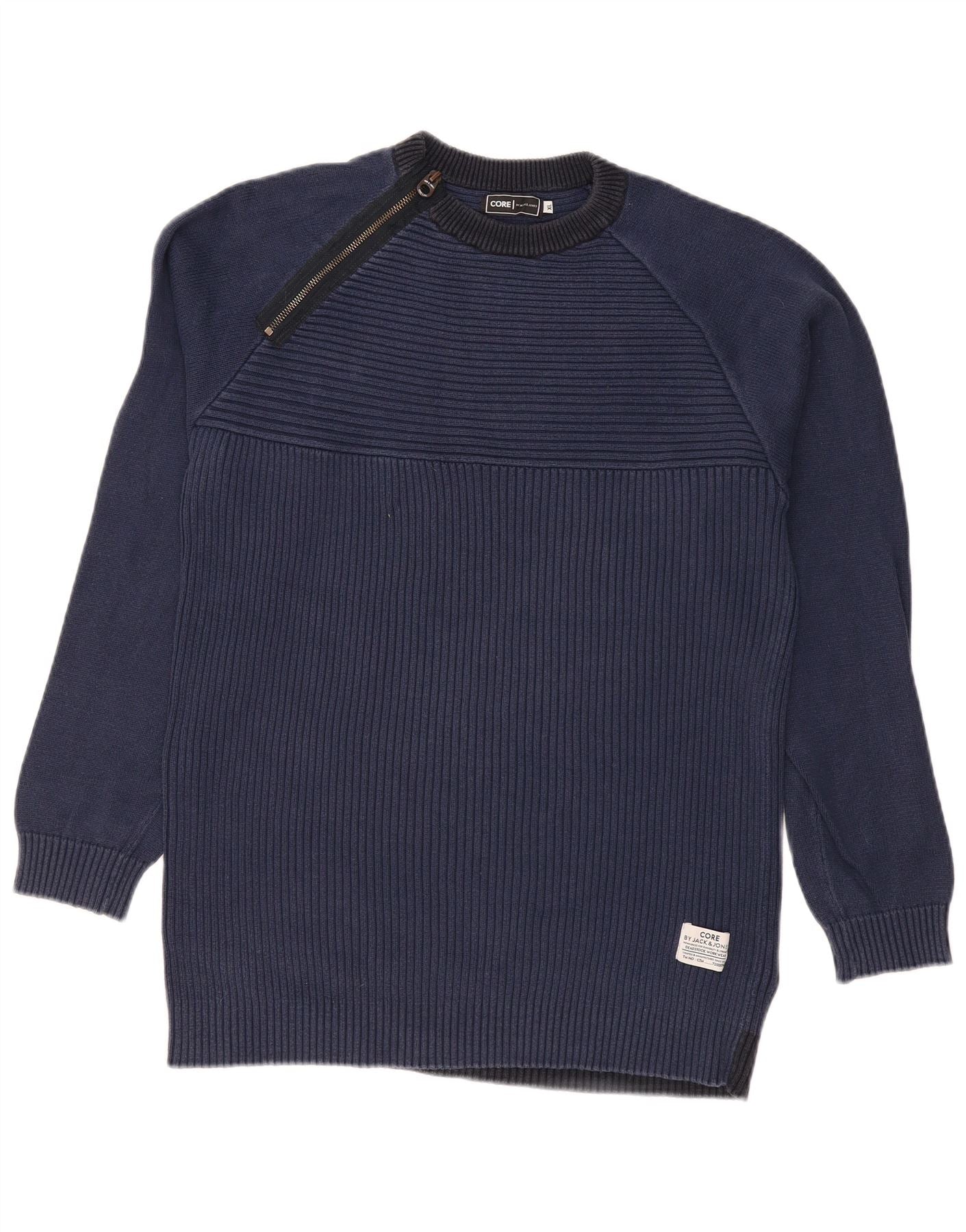 JACK & JONES Mens Core Zip Neck Jumper Sweater XL Navy Blue Colourblock
